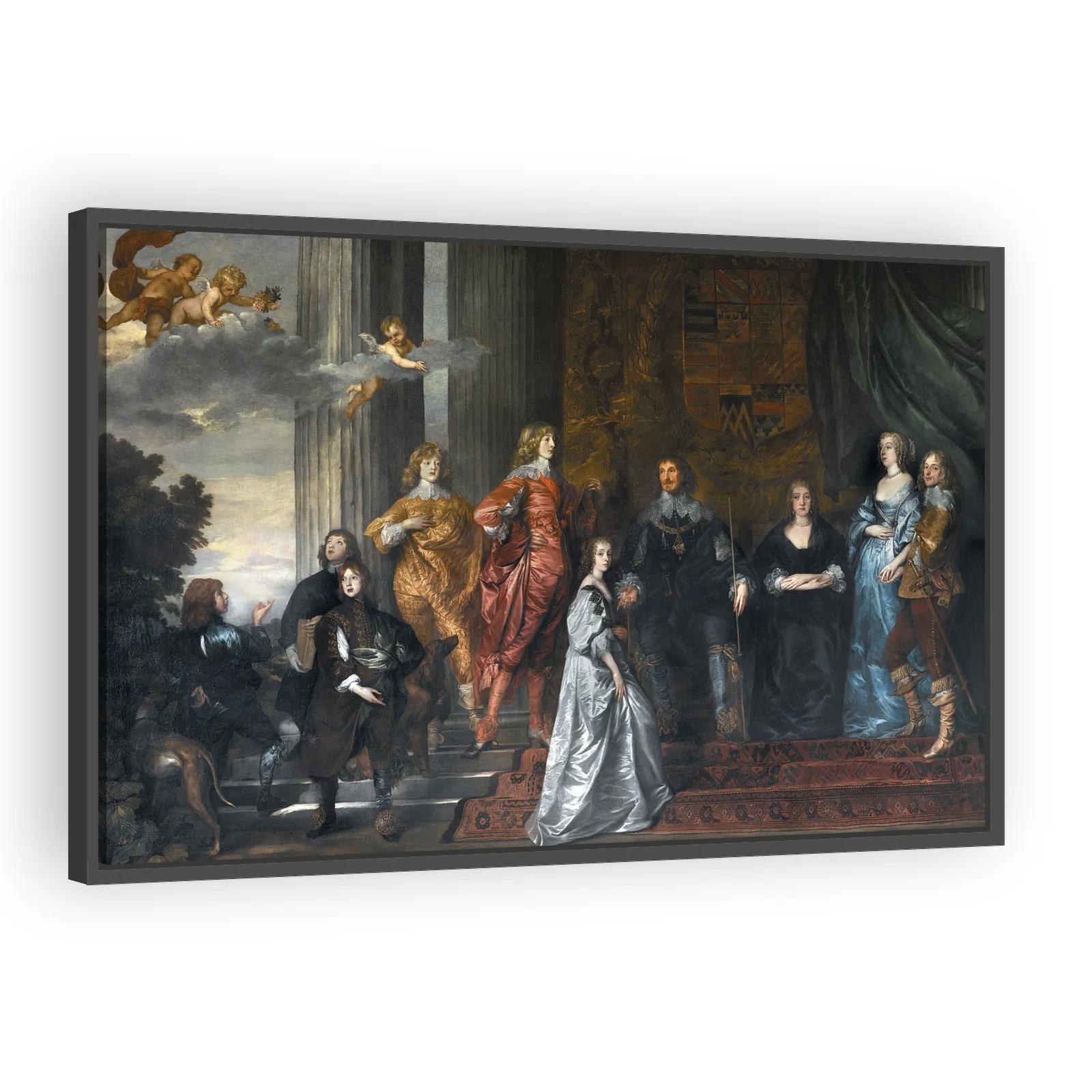 A grand Baroque group portrait by Anthony van Dyck (1635) depicting Philip Herbert, his second wife Anne Clifford and members of the Pembroke household. Elegant composition, refined brushwork and cour...