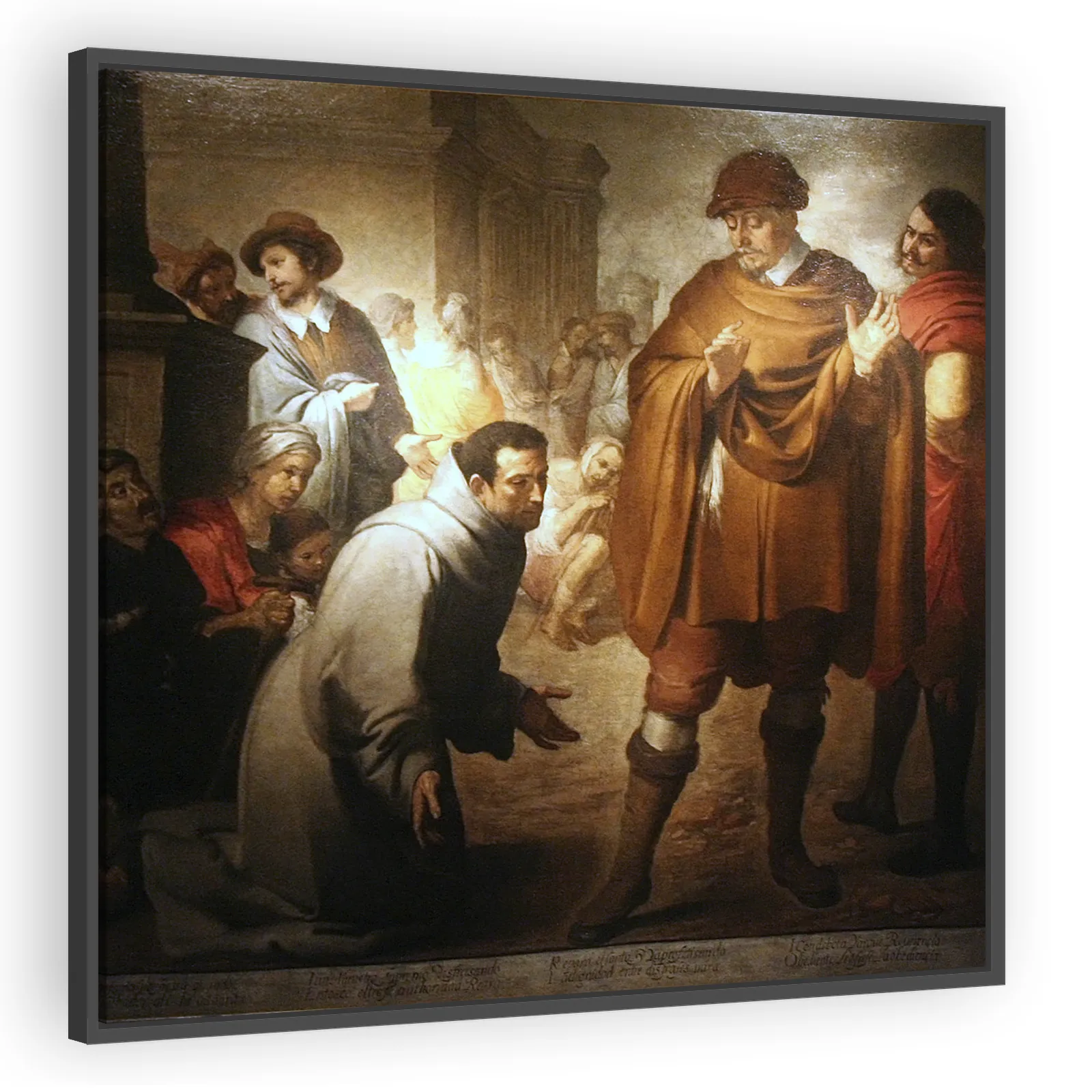 A dramatic 1645 Murillo composition depicting Saint Salvador of Horta confronting the Inquisition. Baroque chiaroscuro, tender realism, and spiritual intensity make this a compelling work for collecto...