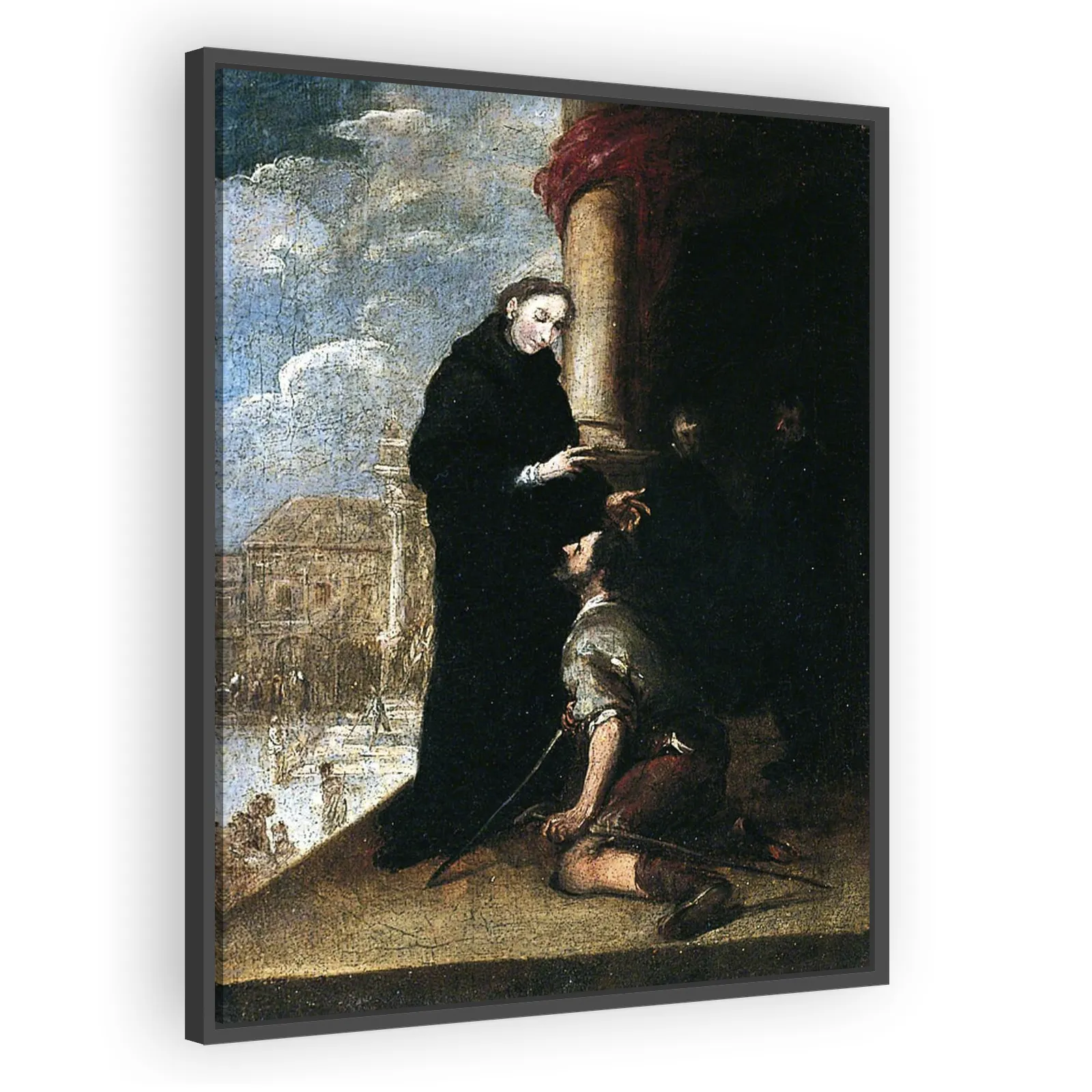 A moving Baroque composition by Murillo in York Art Gallery, showing Saint Thomas of Villanueva’s compassionate miracle. Rich color, soft light and expressive figures create a devotional scene appeali...