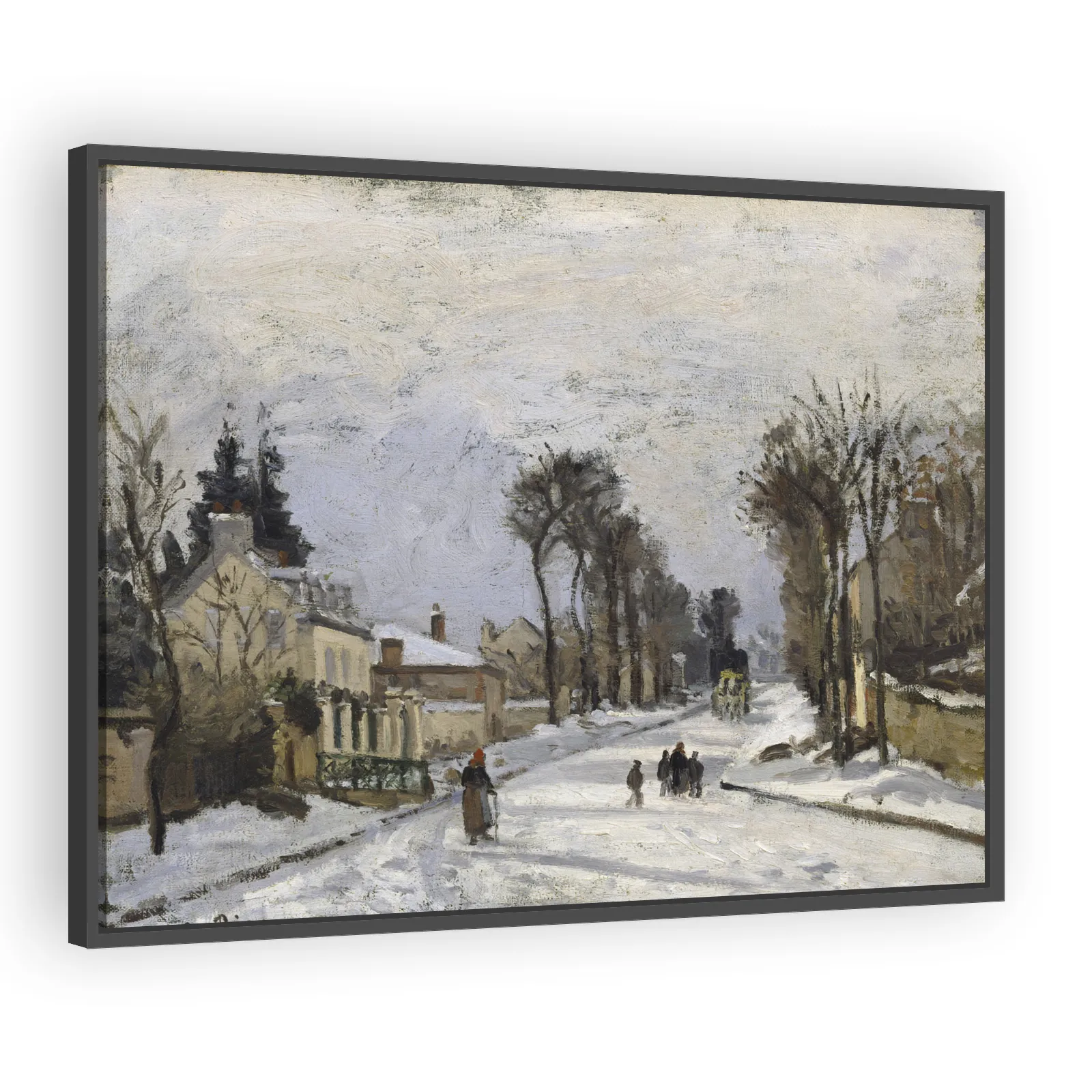 Camille Pissarro’s 1869 Route to Versailles, Louveciennes captures the quiet vitality of suburban French landscape with crisp brushwork and sensitive light—an early Impressionist vision that appeals t...