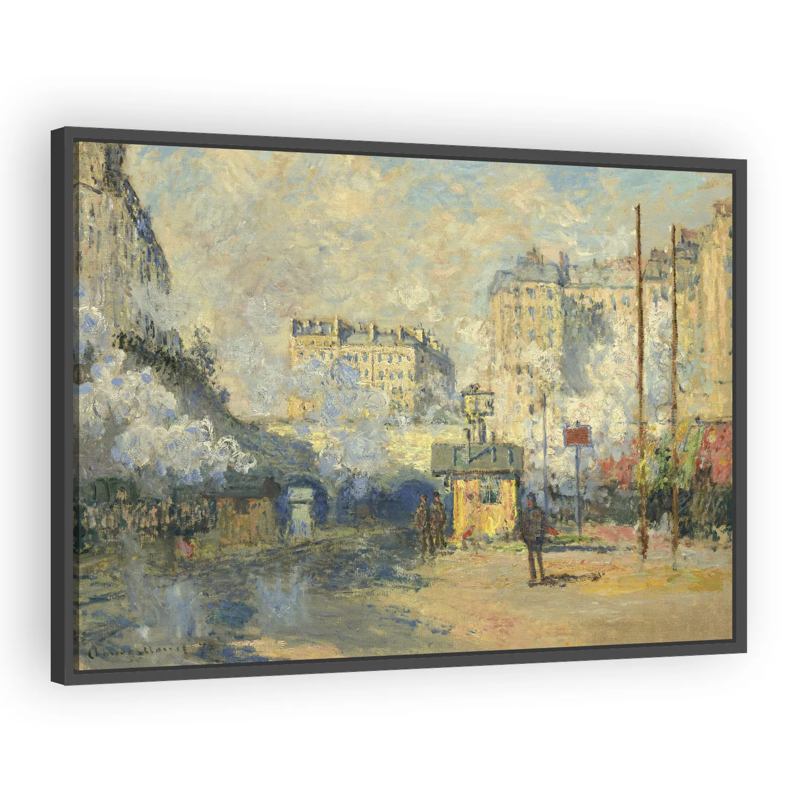 Claude Monet’s 1877 view of Saint-Lazare captures industrial Paris through shimmering light and steam. A hallmark of Impressionism, the canvas emphasizes atmosphere and fleeting effects — ideal for co...