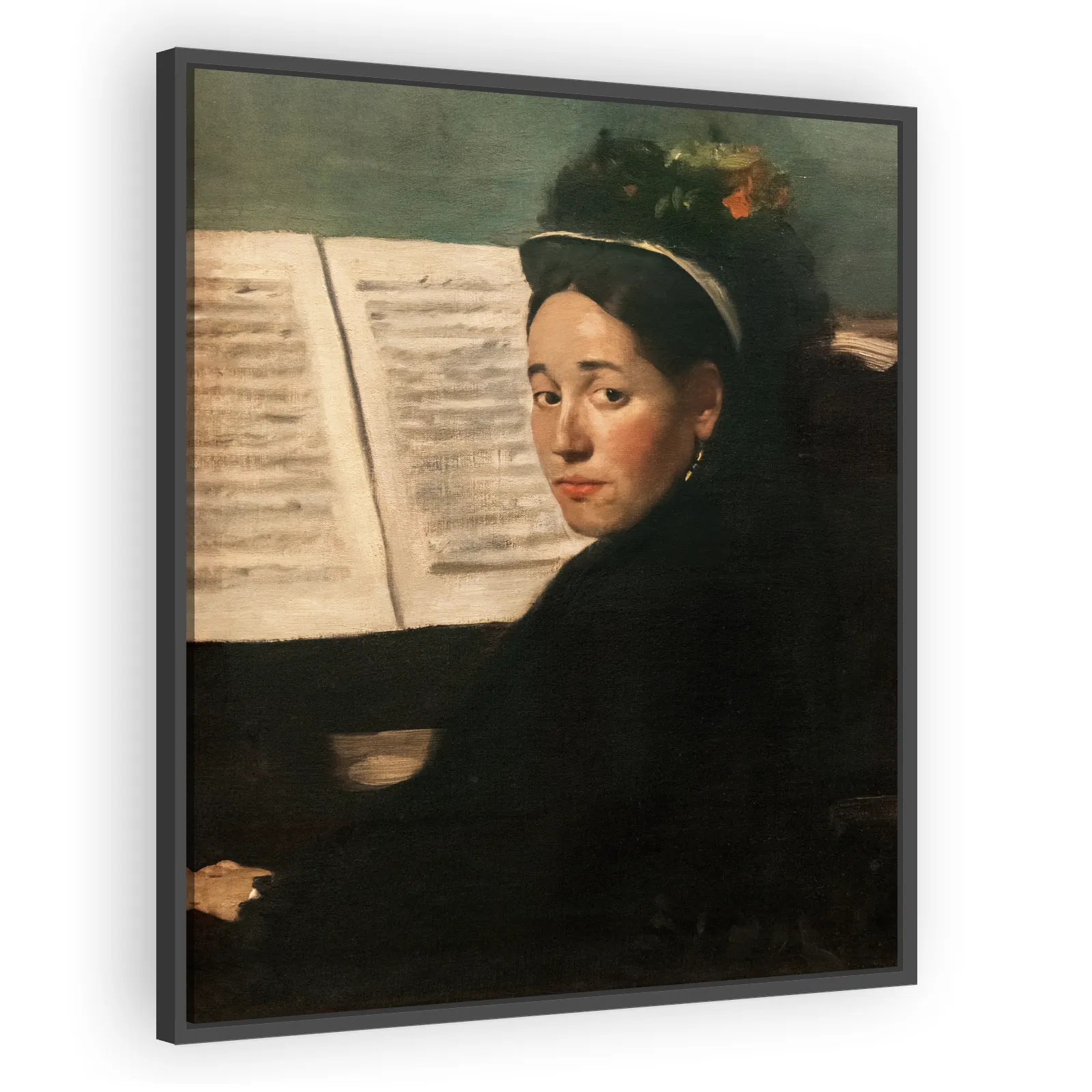 Edgar Degas’s intimate portrayal captures the quiet concentration of Mademoiselle Dihau at the piano. A refined Impressionist study of light, posture, and domestic music-making—ideal for collectors dr...