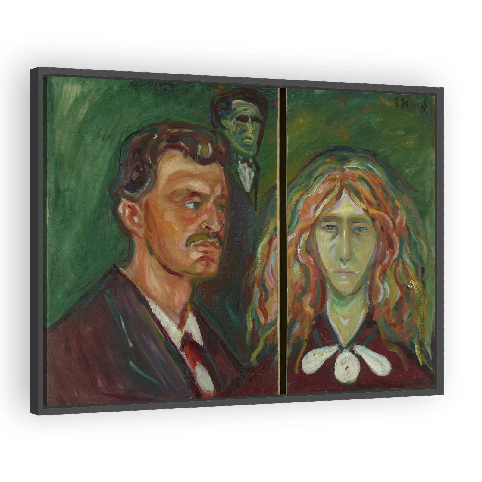 Edvard Munch's 1905 Caricature Portrait of Tulla Larsen — a sharp, expressionist study from the Munch Museum collection. A striking psychological depiction born from a split composition with a compani...