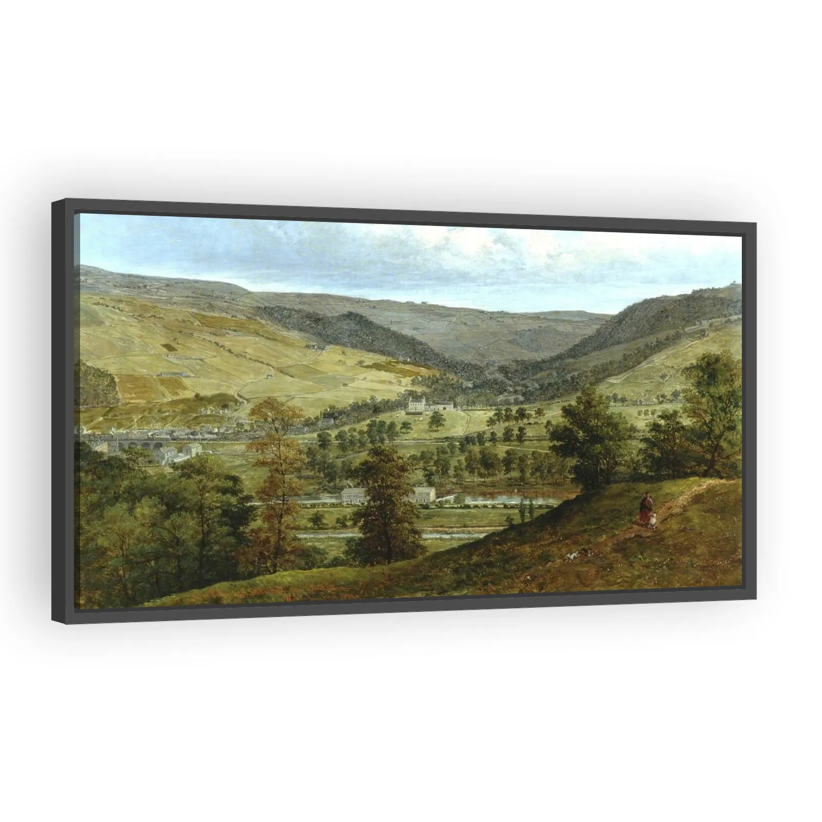 A finely observed 1869 landscape by John Holland, capturing the rugged Calderdale valley and Stocks Hall with Victorian-era detail and atmospheric light — an evocative view for collectors of 19th-cent...