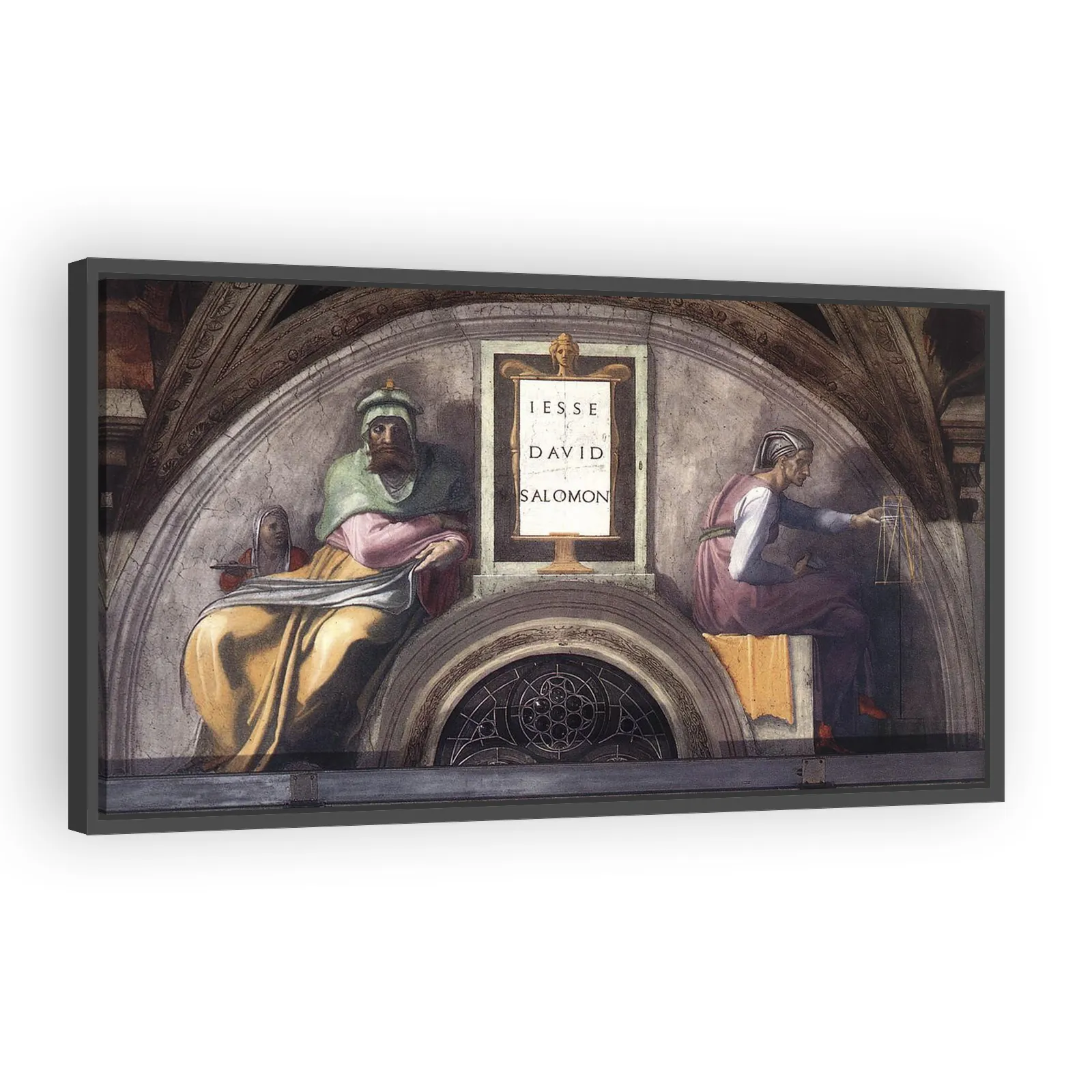 A masterful early 16th-century depiction of the biblical king Solomon by Michelangelo. Richly rendered in High Renaissance style, this work showcases dramatic form, sculptural modeling, and timeless g...