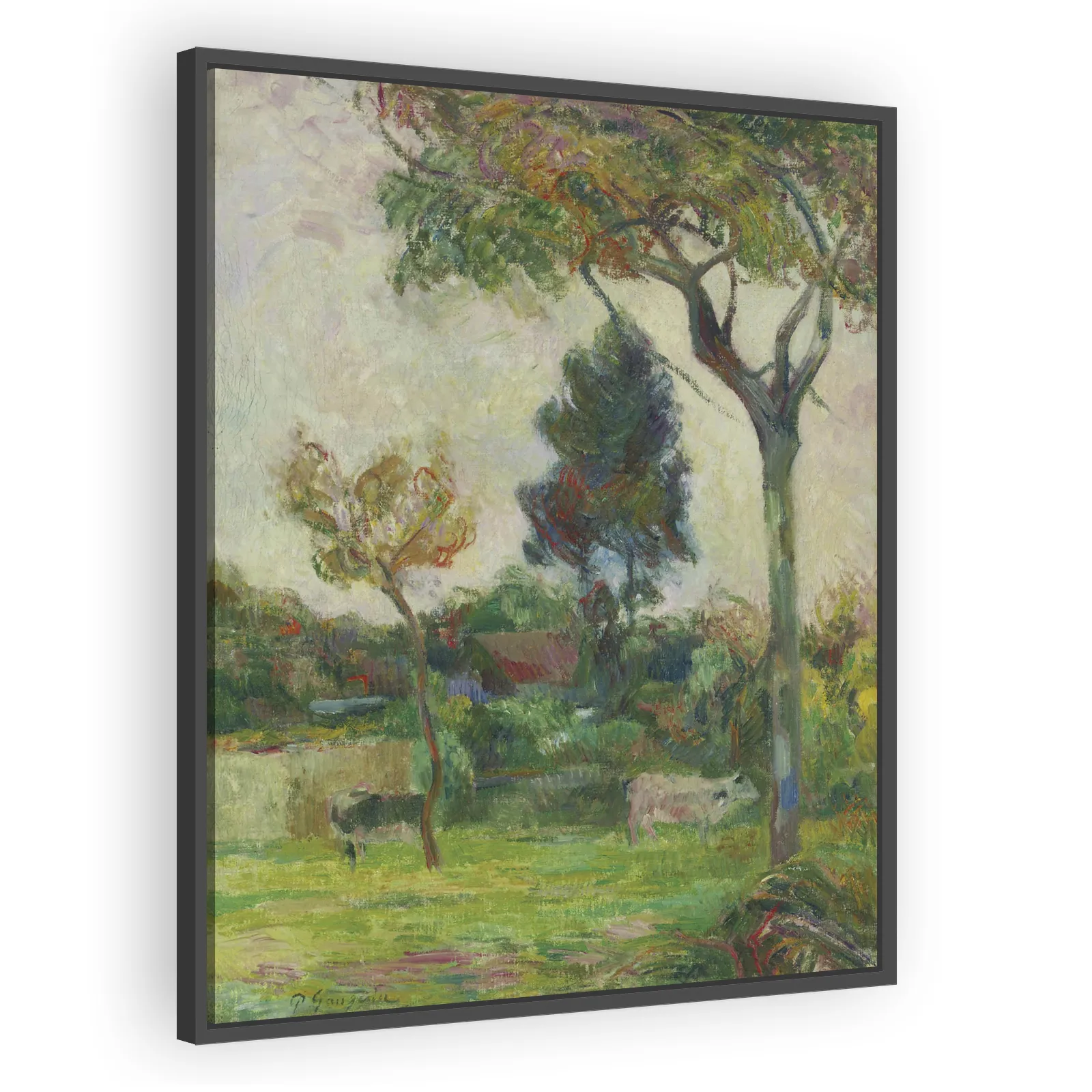 Paul Gauguin’s 1884 Deux vaches au pré captures a quiet pastoral scene through simplified form and expressive color. This transitional work reveals Gauguin’s move away from strict realism toward a mod...