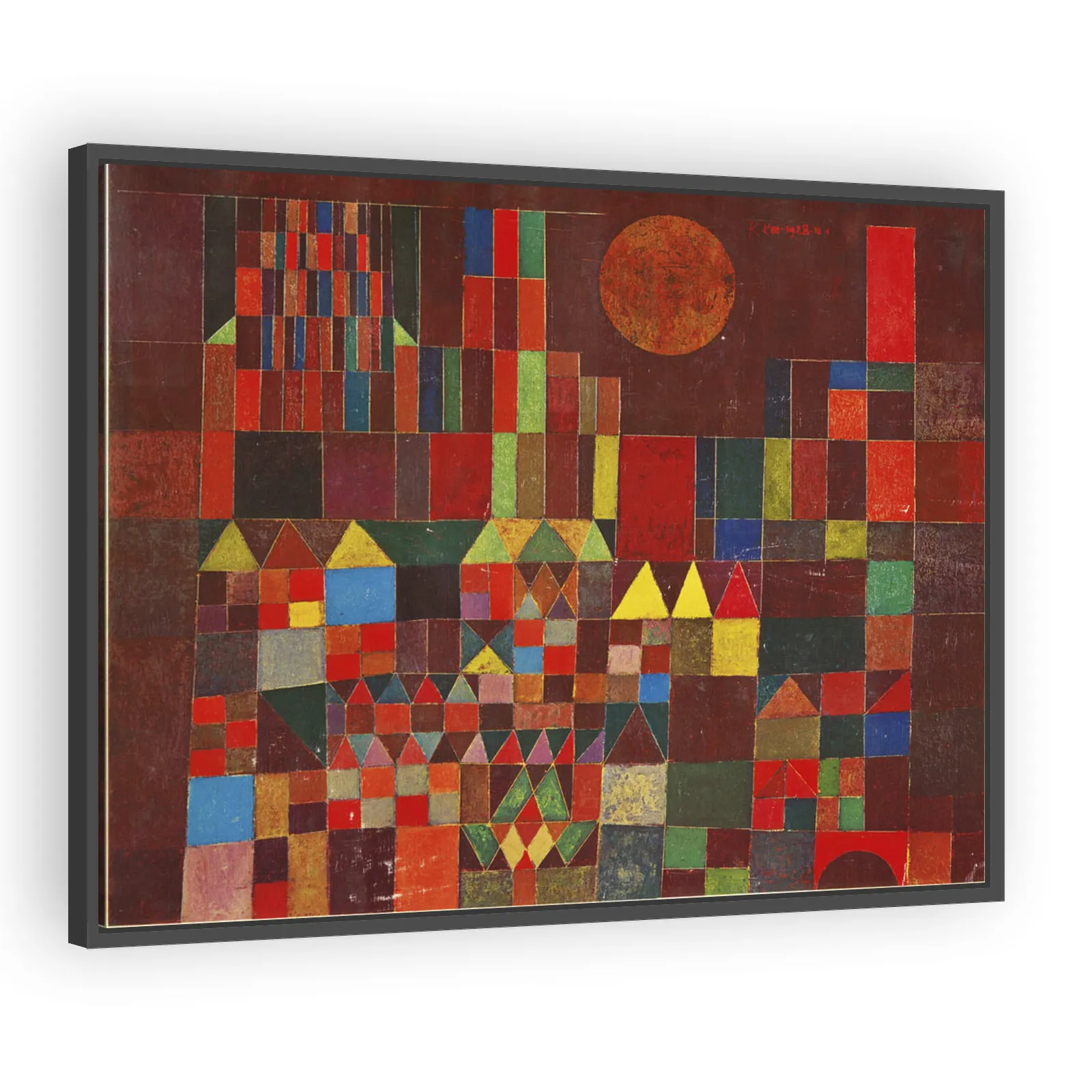 Paul Klee's Castle and Sun (1929) fuses geometric abstraction and poetic symbolism. Its luminous planes and simplified forms exemplify Klee’s Bauhaus-era approach to color, line, and pictorial notatio...