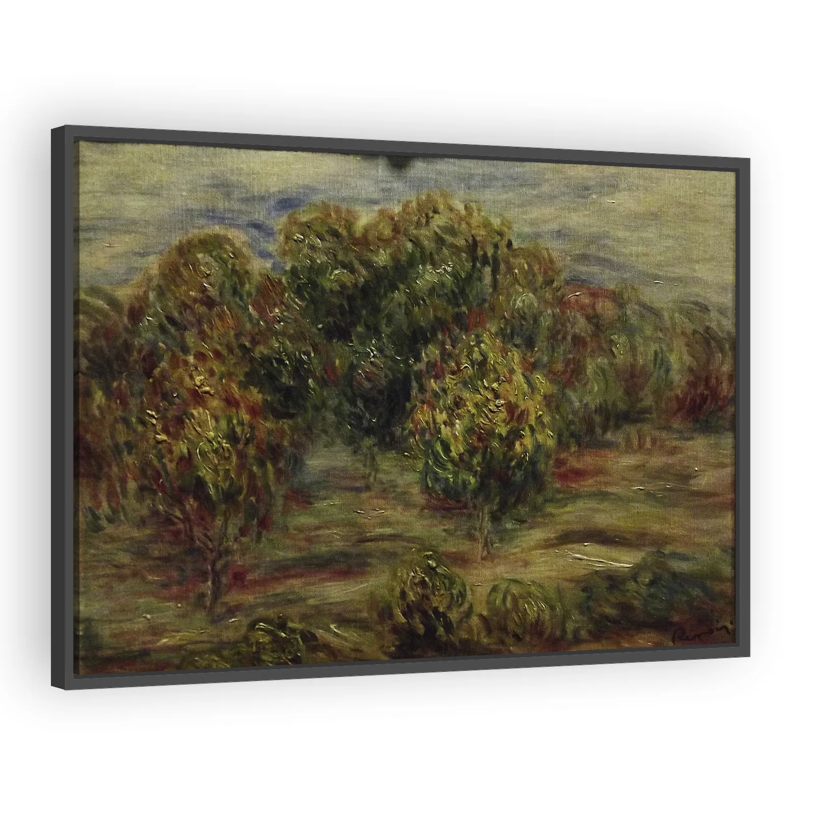 A luminous late-period landscape by Pierre-Auguste Renoir, painted in 1910 at Cagnes-sur-Mer. Rich color, warm light, and fluid brushwork capture the Mediterranean atmosphere and the artist’s evolving...