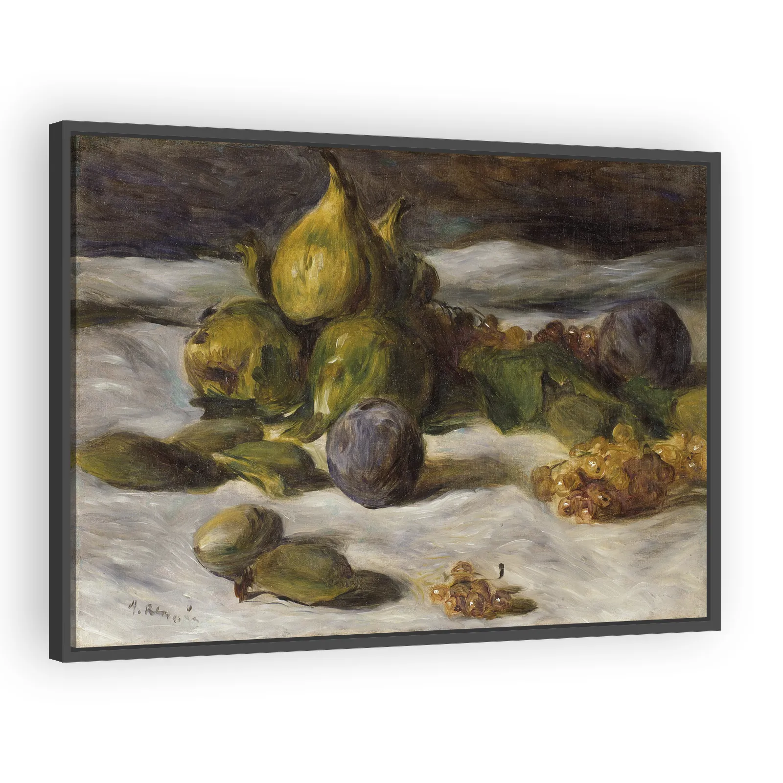A luminous 1871 still life by Pierre-Auguste Renoir, capturing ripe figs and red currants with warm color and lively brushwork. An intimate example of early Impressionist exploration of light, texture...