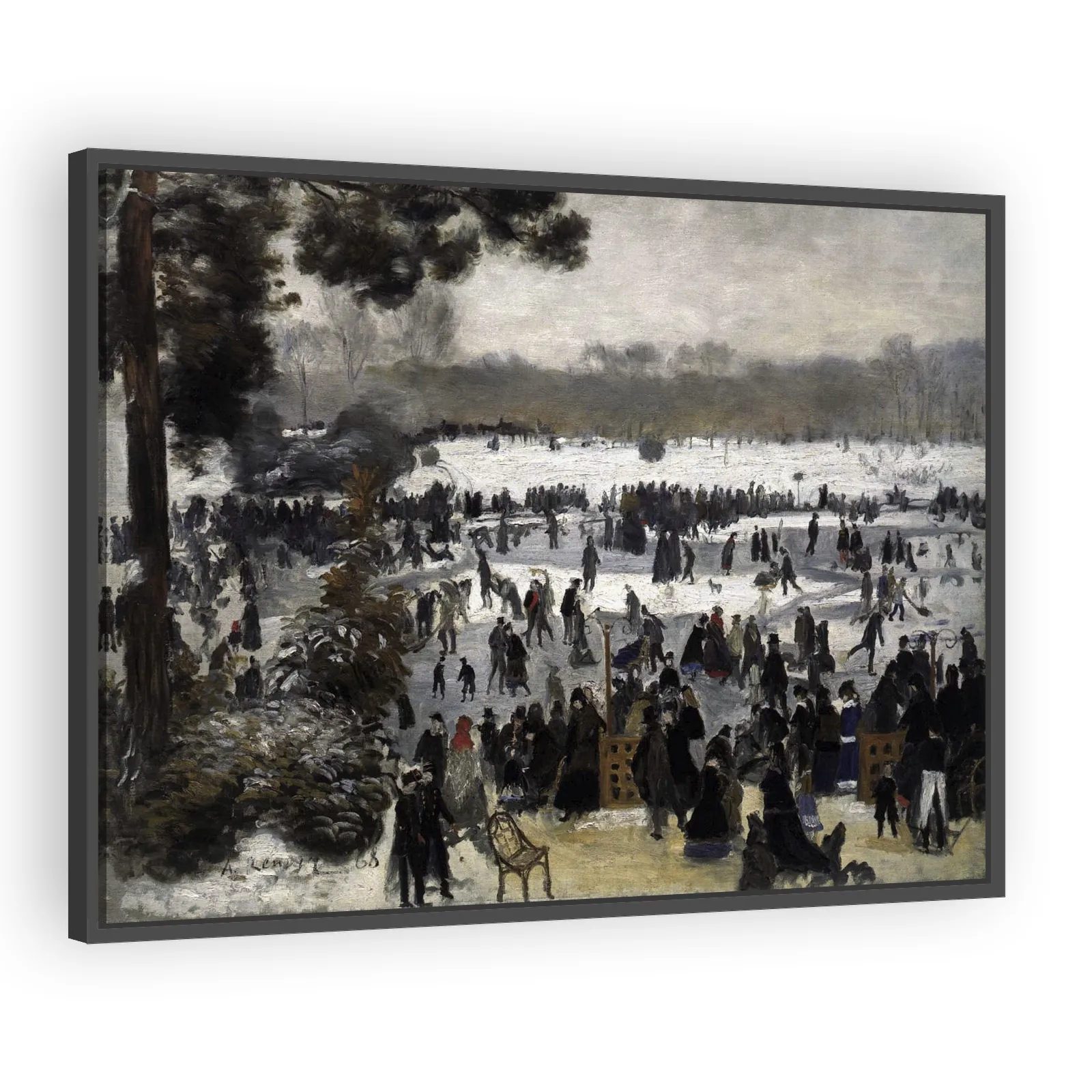Pierre-Auguste Renoir’s 1868 Skaters in the Bois de Boulogne captures a lively Parisian winter with fluid brushwork, luminous color, and early Impressionist interest in light, leisure, and modern urba...