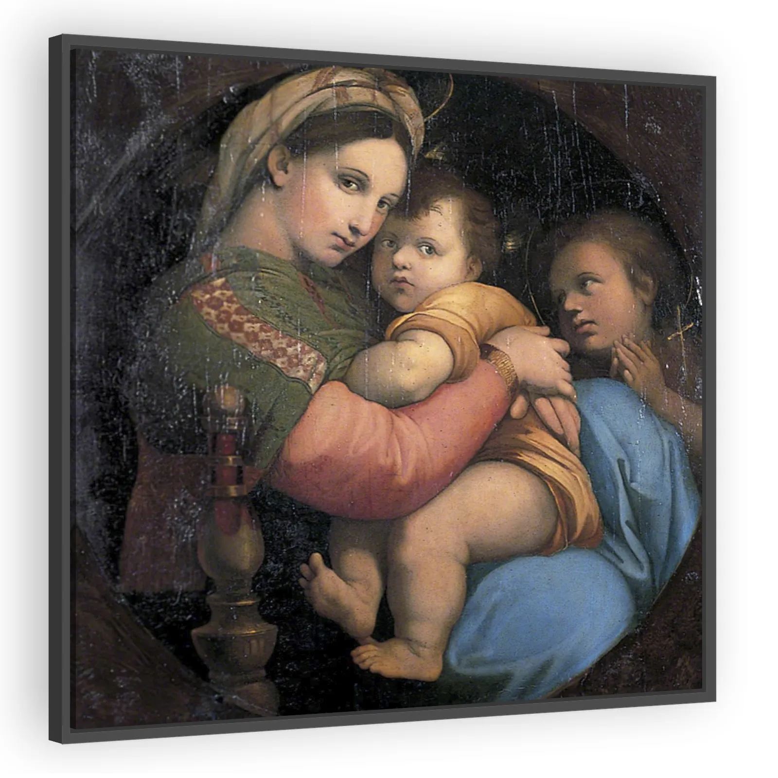 Raphael’s Madonna della Sedia is an intimate High Renaissance tondo that captures maternal tenderness through harmonious composition, warm color, and graceful figures—an enduring favorite for collecto...