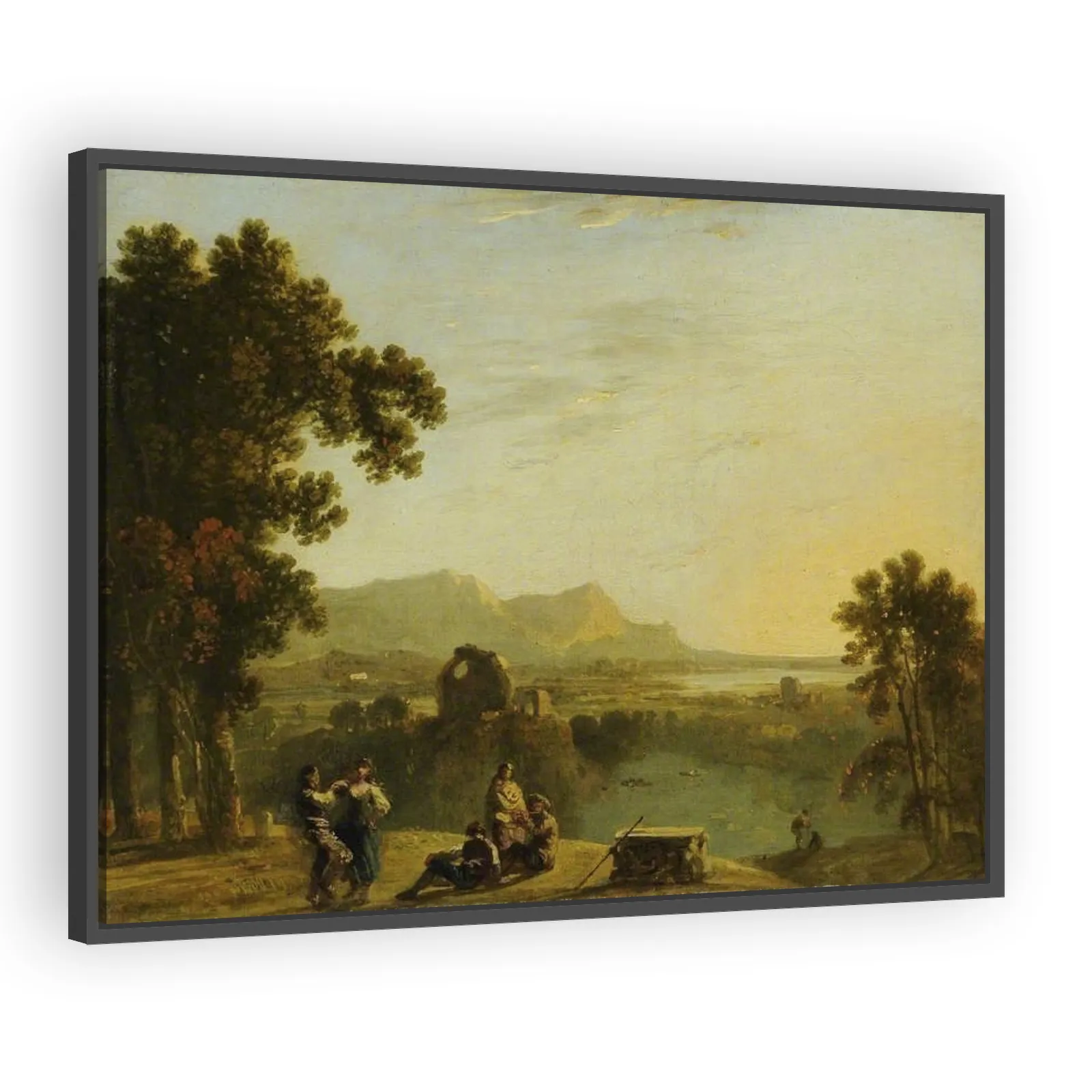 A graceful Italianate landscape by Richard Wilson, combining classical composition with atmospheric light. Ideal for collectors of 18th-century British landscape painting and lovers of grand, pastoral...