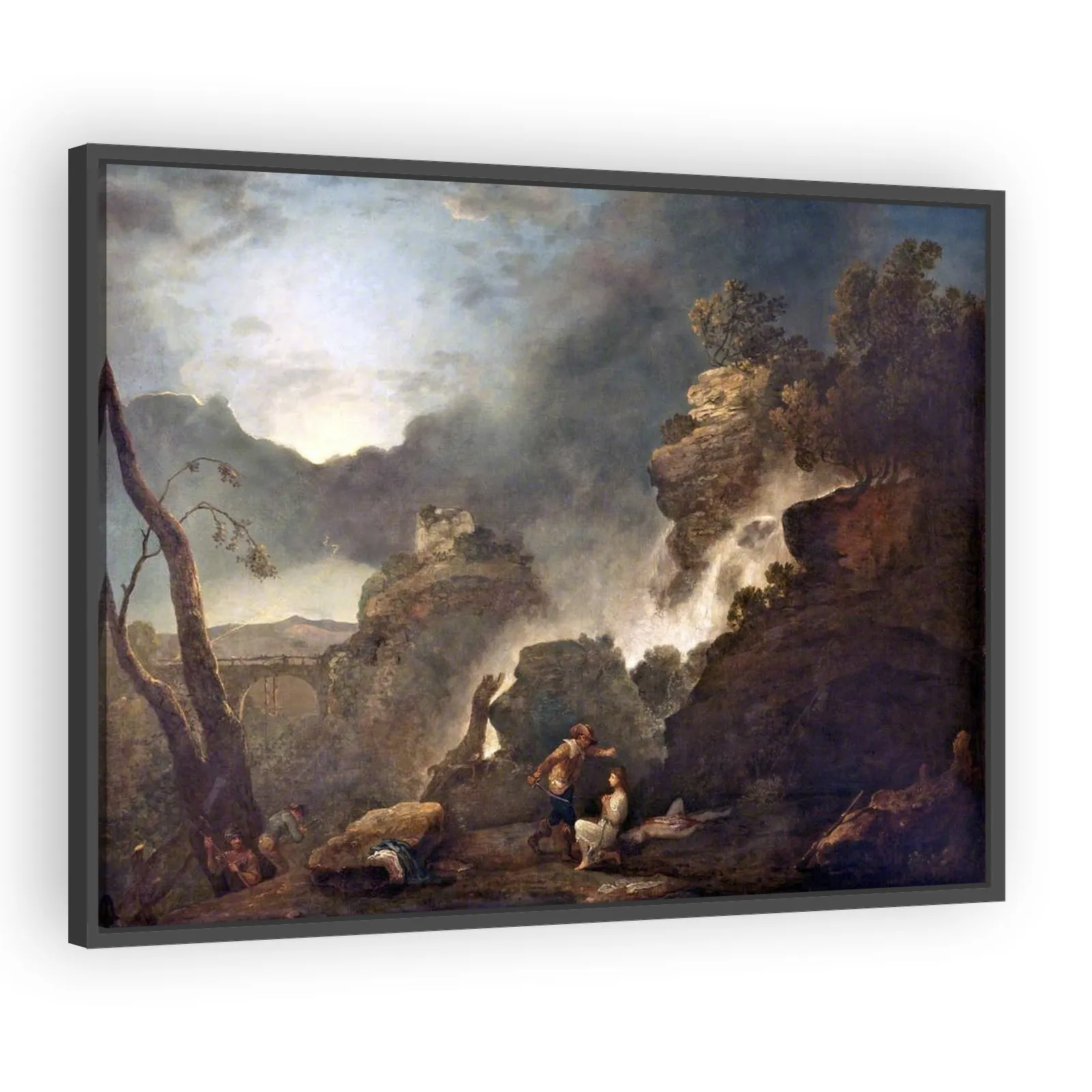 A 1768 composition by Richard Wilson, a pivotal figure in British landscape painting. This atmospheric work reflects classical influences, careful tonal harmonies, and a contemplative mood that appeal...