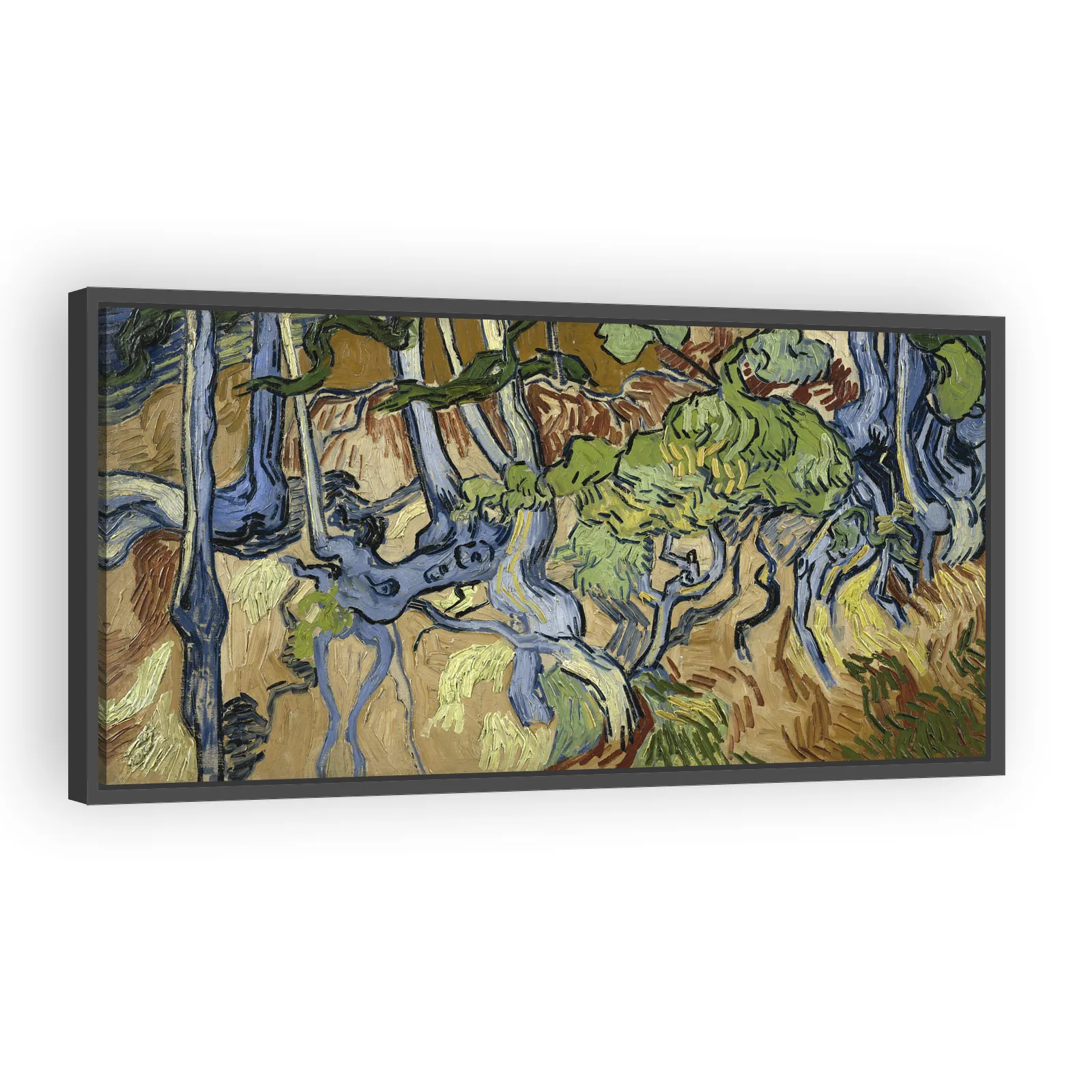A late, intensely expressive landscape by Vincent van Gogh (1890). Tree Roots captures the artist’s turbulent brushwork, vivid color, and intimate study of nature—an evocative piece that appeals to co...