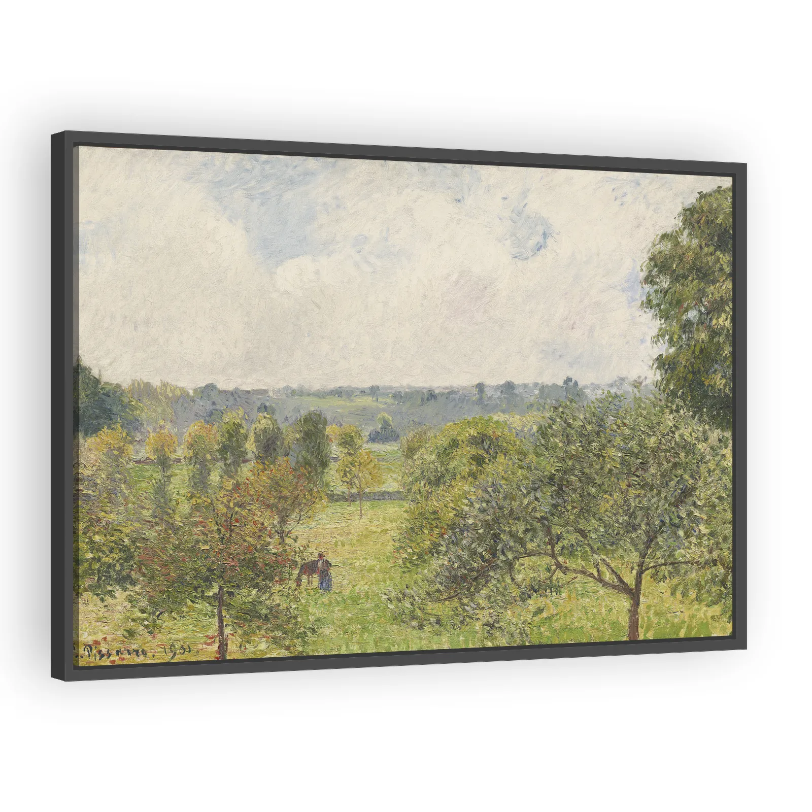 Camille Pissarro's 1901 landscape captures the luminous calm after a rain in Éragny. A late-Impressionist study in atmosphere, shifting light, and textured brushwork—ideal for collectors drawn to quie...