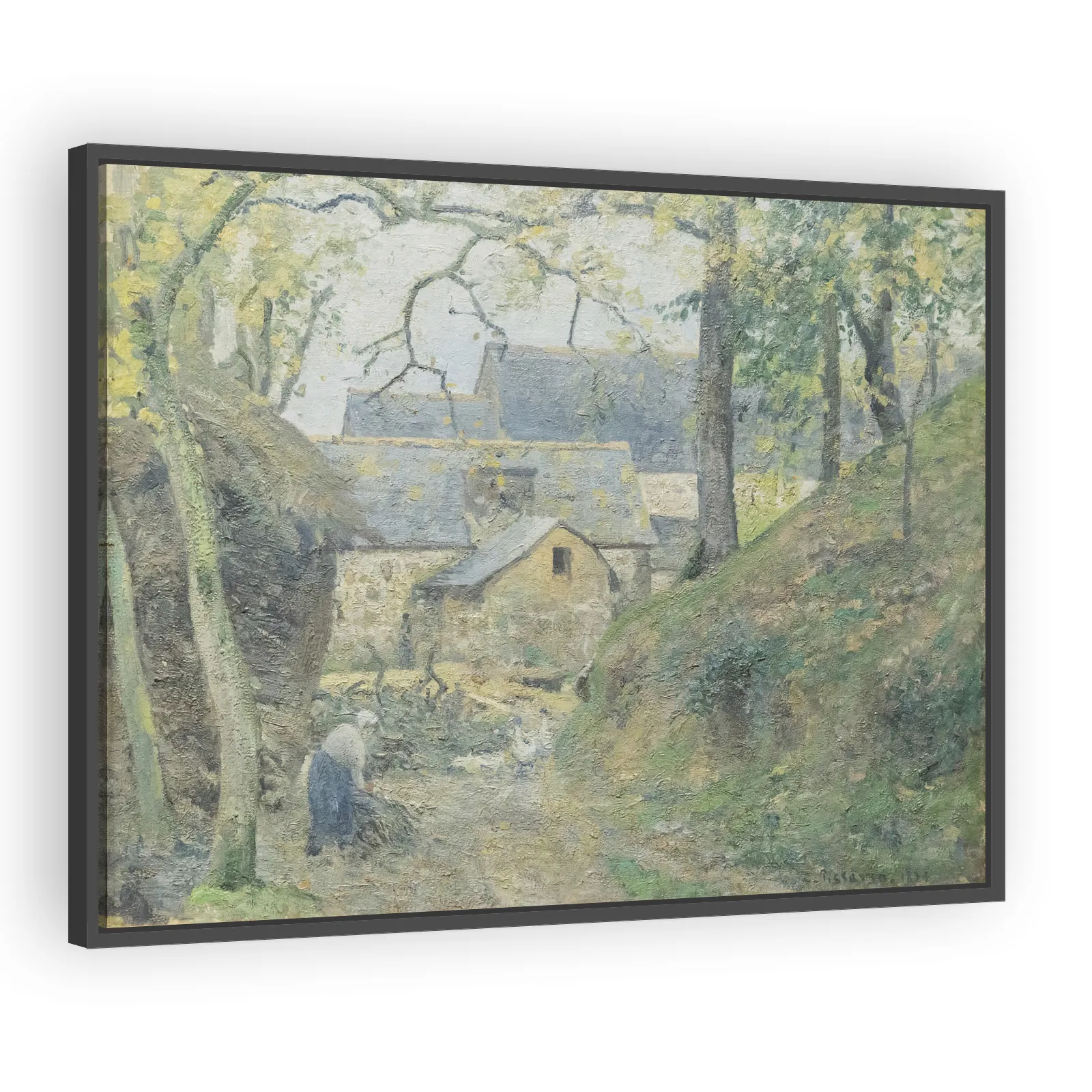 An 1874 pastoral by Camille Pissarro capturing rural life with loose brushwork and luminous atmosphere. This Impressionist landscape balances intimate detail and broad tonal harmonies—ideal for collec...