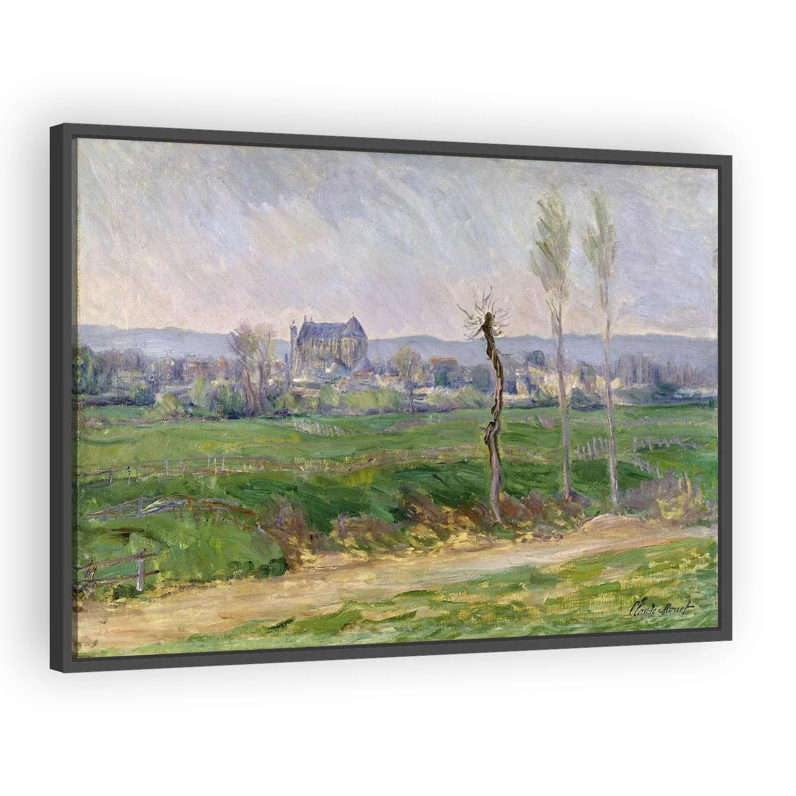 An evocative panoramic scene by Claude Monet (1886) capturing the light and atmosphere of Vernon on the Seine. A fine example of Monet’s late-Impressionist focus on color, fleeting effects, and the rh...
