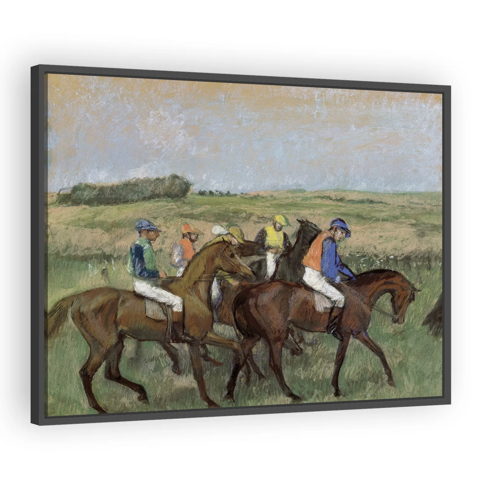 Edgar Degas’s At the Races captures the electric motion and social drama of the racetrack with acute compositional cropping and observational realism. A dynamic, stylish work that exemplifies Degas’s...
