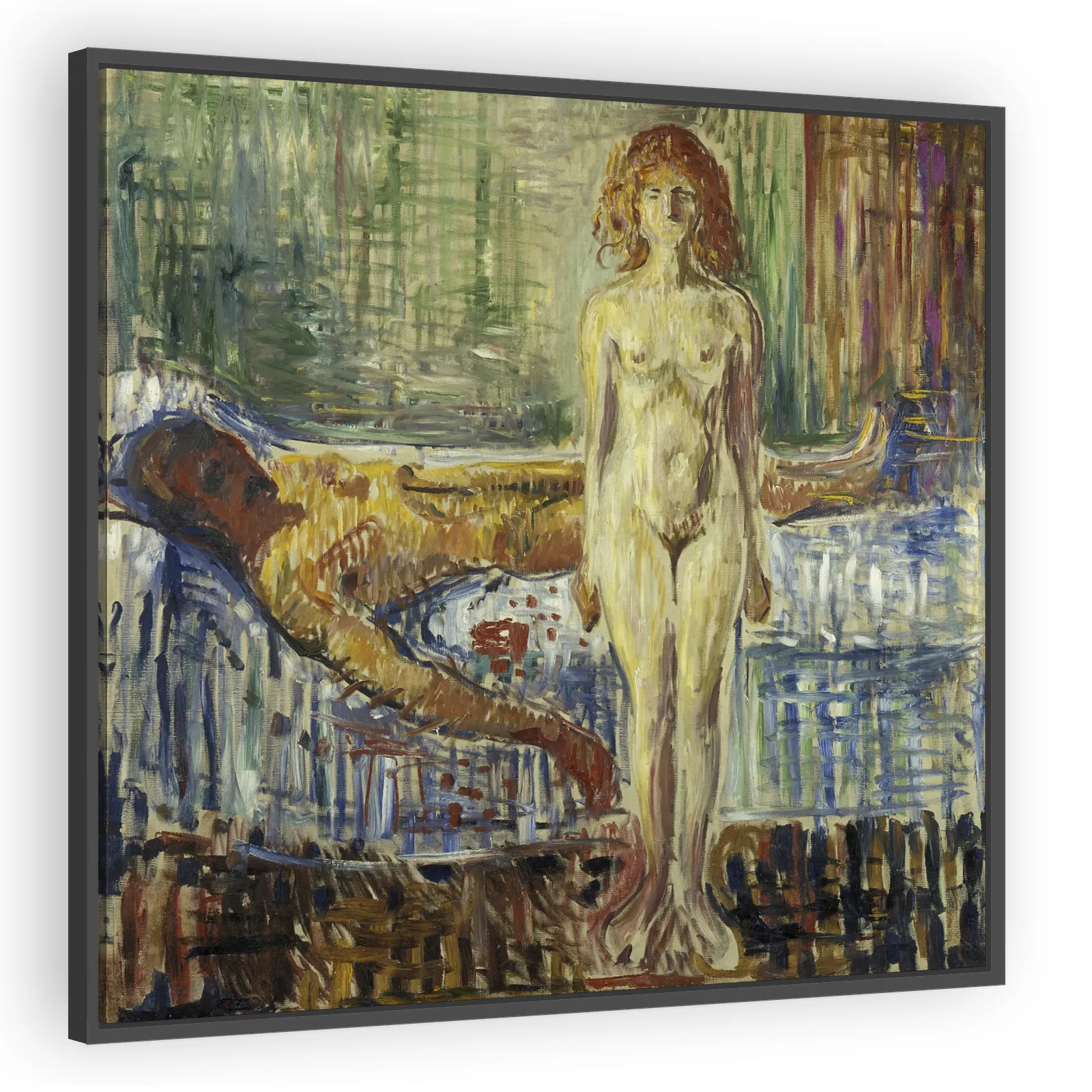 Edvard Munch's 1907 The Death of Marat reinterprets a charged revolutionary subject through expressionist color, stark composition, and psychological intensity—an emotive centerpiece for collectors dr...