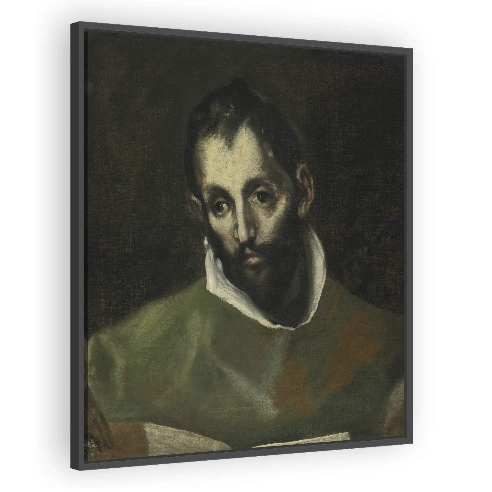 A striking early 17th-century study by El Greco, focusing on the expressive visage of Saint Luke. The work exemplifies El Greco’s dramatic elongation, bold color contrasts and spiritual intensity—idea...