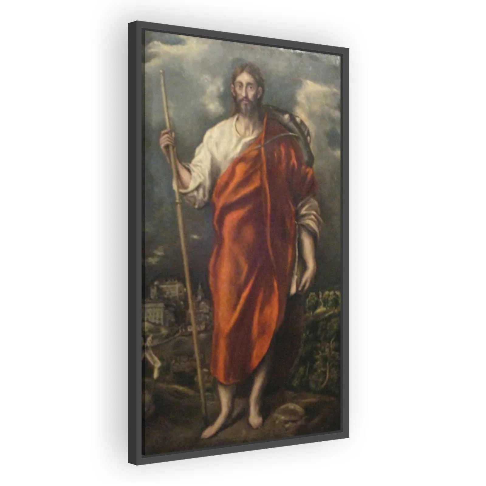 A late-period El Greco (c.1610) portraying Saint James the Greater in the guise of a pilgrim. The work exemplifies El Greco’s expressive elongation, dramatic color, and spiritual intensity, formerly i...