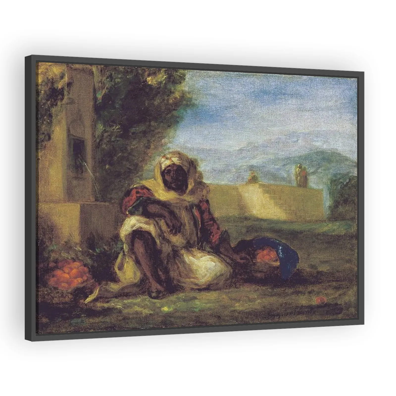 Eugène Delacroix’s Marchand d’oranges au Maroc (1852) captures the Romantic painter’s fascination with Moroccan life—vivid color, expressive brushwork, and lively market atmosphere appeal to collector...