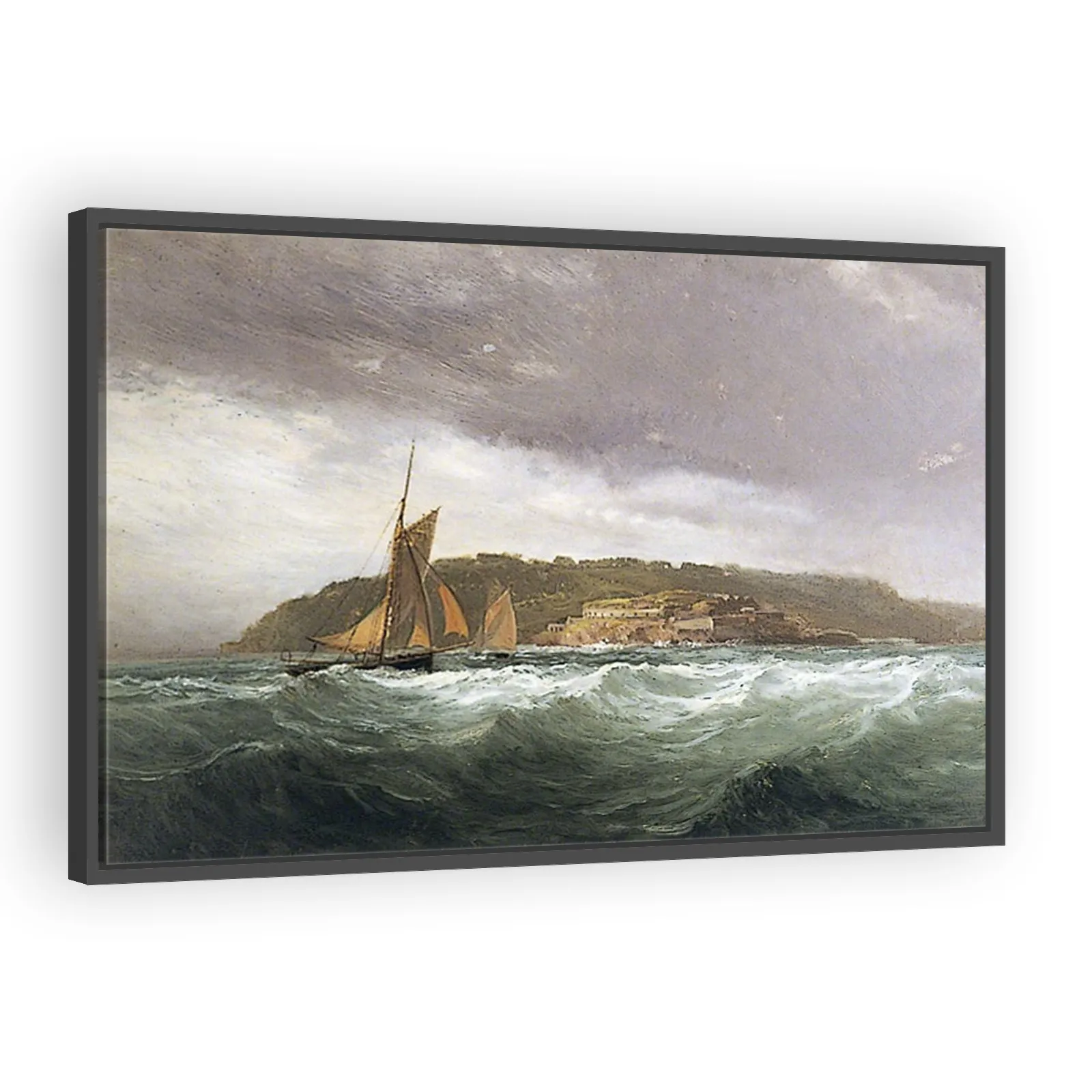 A dramatic Romantic landscape by George Cole, Mount Edgecumbe captures coastal atmosphere, luminous light, and meticulous topographical detail—an evocative piece for collectors of 19th-century British...