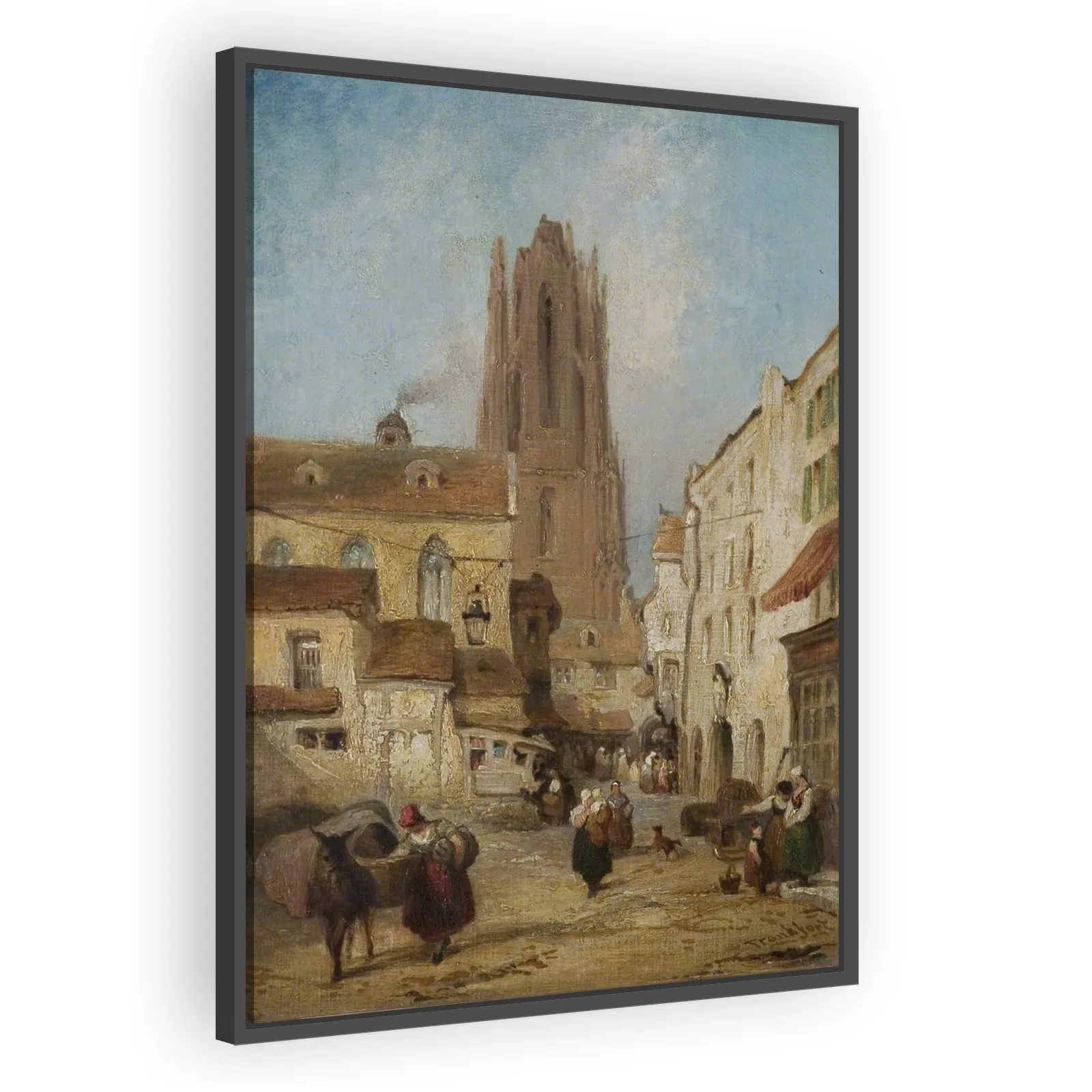 A finely observed 19th-century street view by George Jones, capturing urban life and architectural detail in Frankfurt. Ideal for collectors of topographical painting and lovers of historical cityscap...