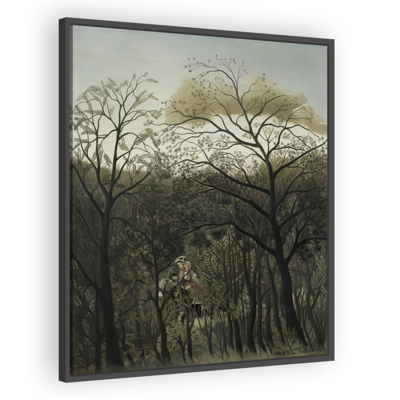 Henri Rousseau’s 1889 Rendezvous in the Forest captures the artist’s signature naïve vision: lush, meticulously patterned foliage, flattened perspective and enigmatic figures. A striking example of Ro...