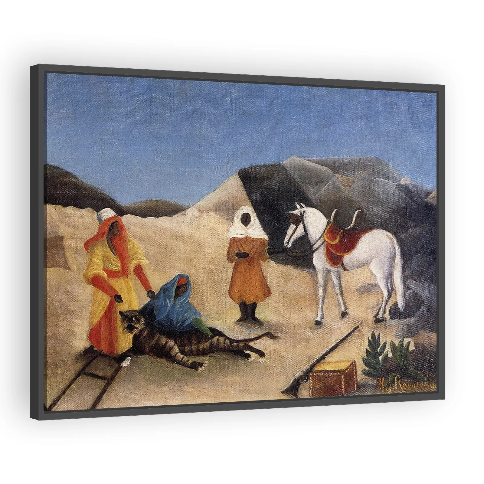 Henri Rousseau’s Tiger Hunt (1895) is a striking example of naïve art: bold color, dense jungle foliage, and dramatic animal energy. A captivating, decorative scene that appeals to collectors drawn to...