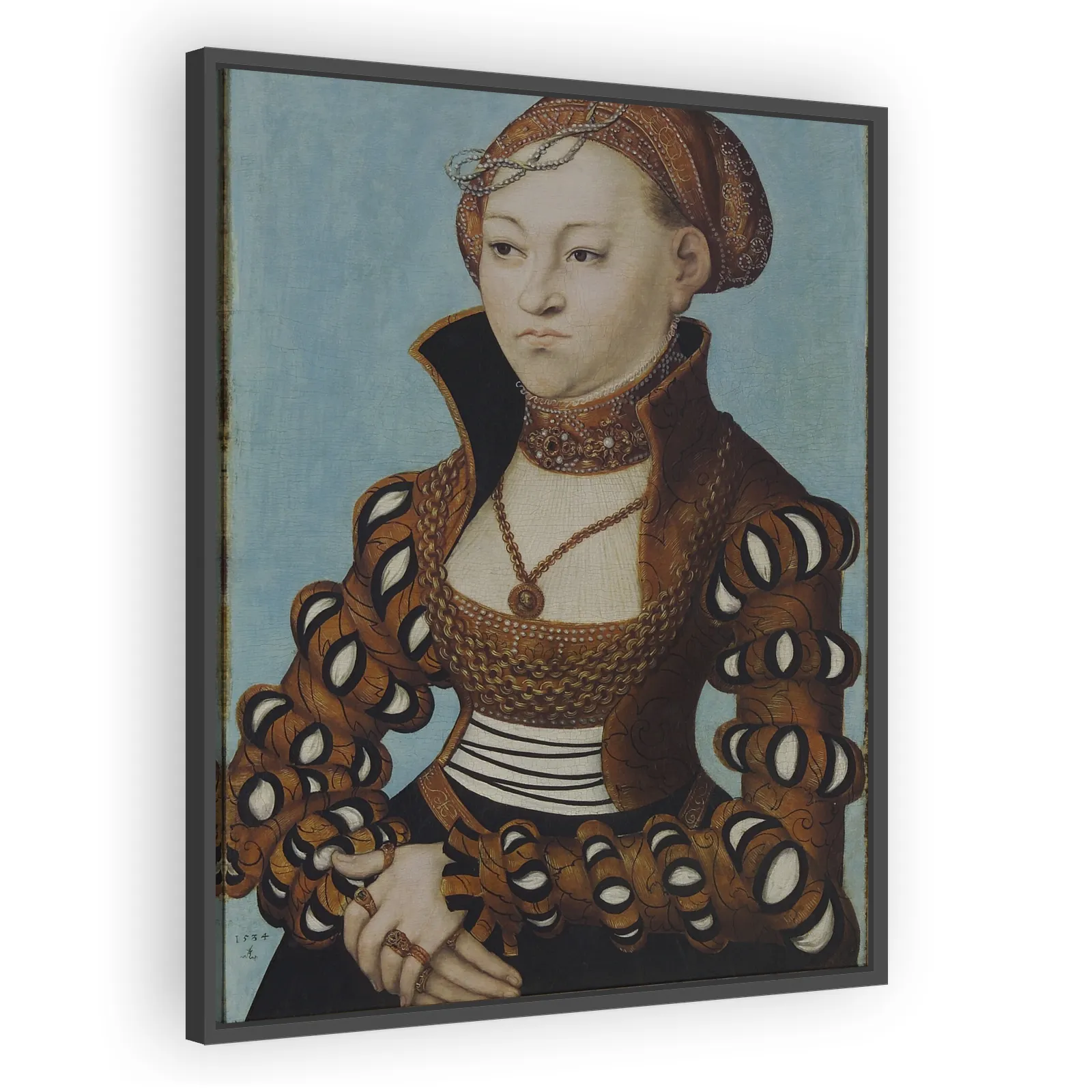 A finely detailed 1534 portrait by Lucas Cranach the Elder, capturing elite Renaissance fashion, dignified pose, and masterful use of line and color—an evocative example of Northern Renaissance portra...