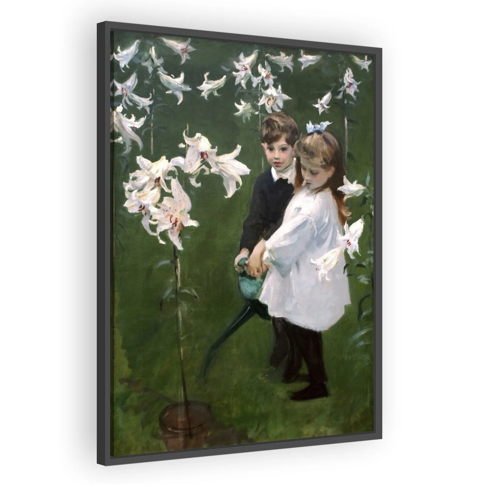 John Singer Sargent’s 1884 Garden Study of the Vickers Children captures informal childhood intimacy with luminous brushwork and natural light. A refined plein-air portrait that blends realism with Im...