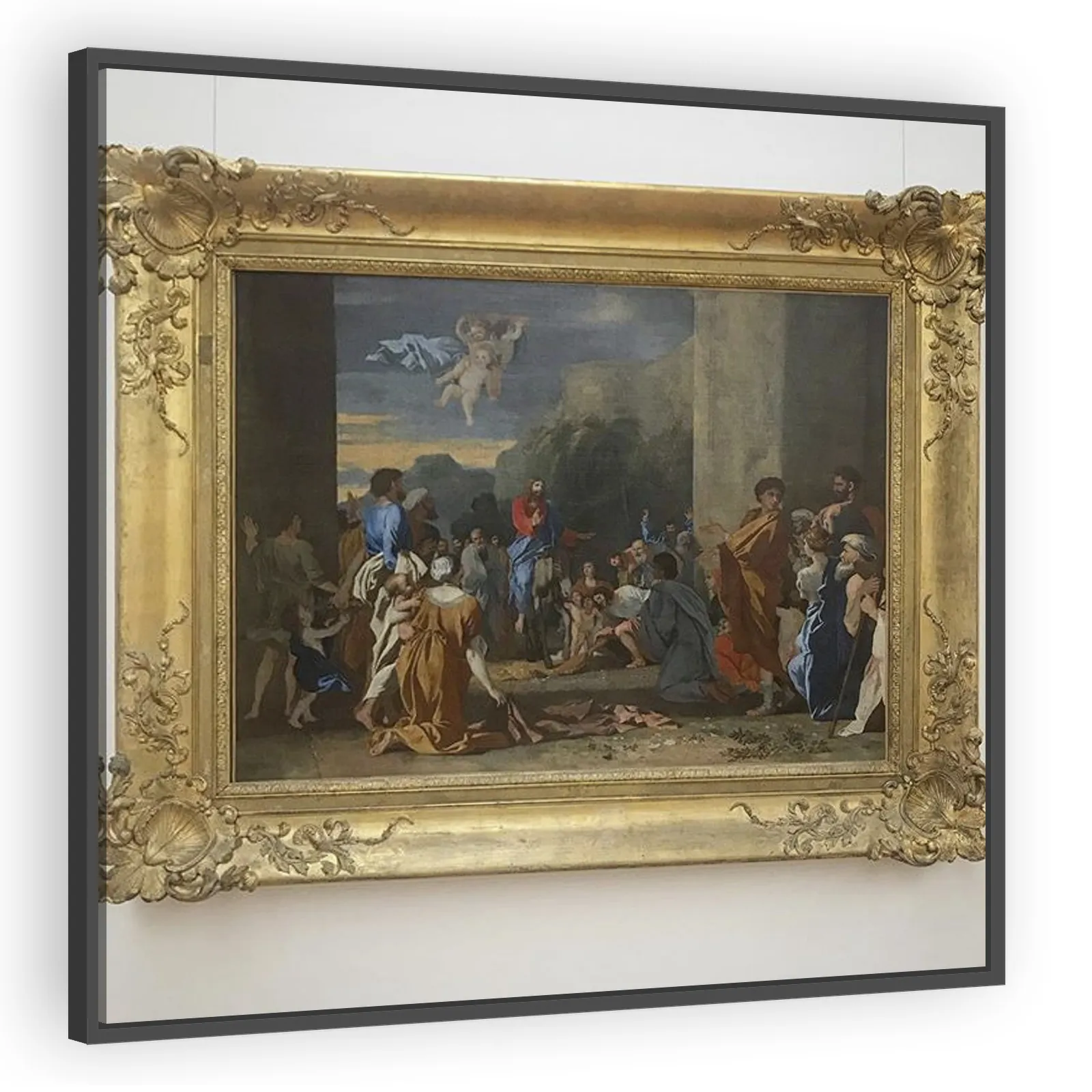 Nicolas Poussin (1594–1665) was a French Baroque painter who established the principles of French Classicism through disciplined, classical compositions and idealized landscapes. He is known for history paintings and pastoral scenes that influenced Neoclassical painters and the academic tradition.