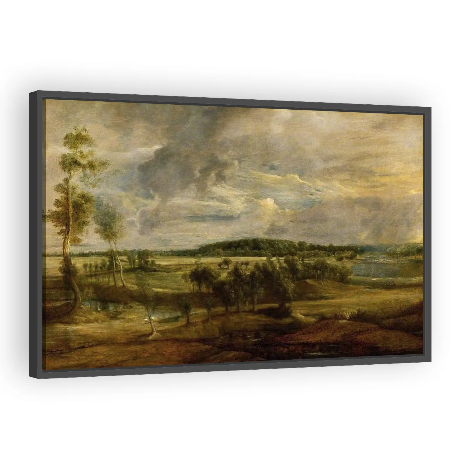 A luminous Baroque landscape by Peter Paul Rubens (1637) capturing Flanders' rolling countryside. Melding dramatic light, painterly brushwork and classical composition, this work exemplifies Rubens’ l...