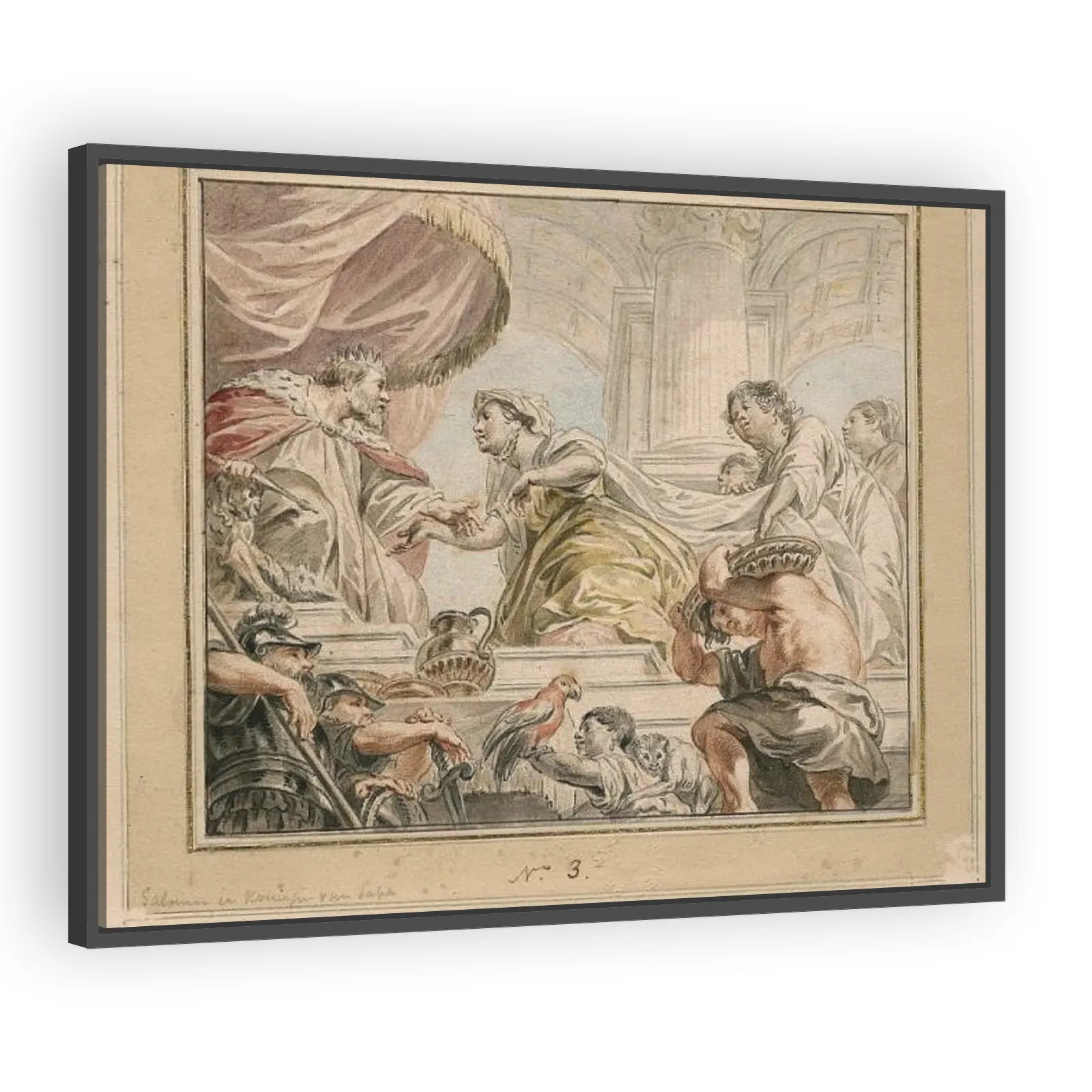 A dramatic Baroque depiction of the biblical encounter between Solomon and the Queen of Sheba. Bold color, theatrical composition, and rich symbolism make this work a striking example of Rubensian gra...
