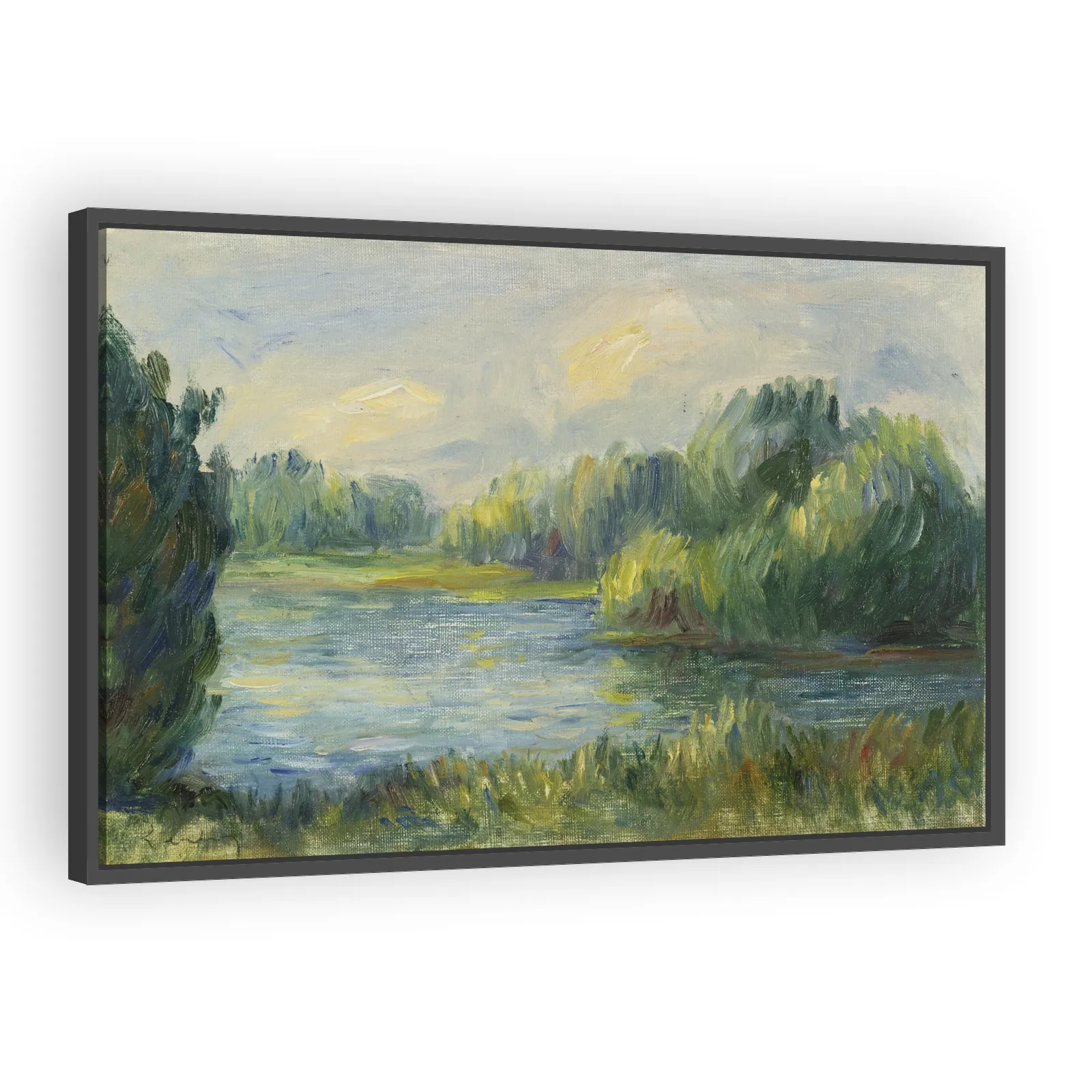 Pierre-Auguste Renoir's Bord de rivière captures the luminous charm of riverside life through vibrant color, fluid brushwork, and the warm, atmospheric light central to Impressionism—a graceful additi...
