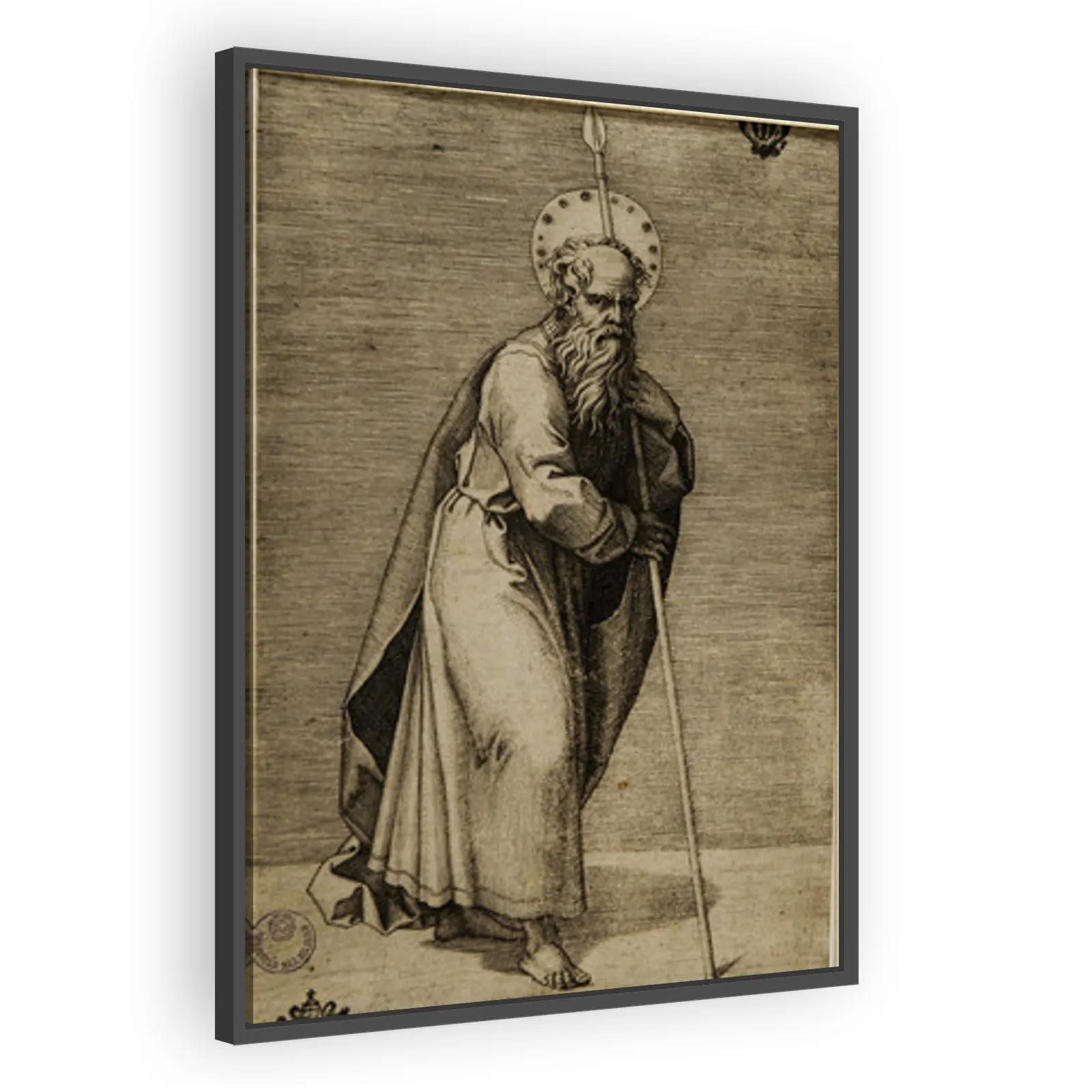 A compelling High Renaissance composition after Raphael (1517), known through Marcantonio Raimondi's prints of Raphael's now-lost Vatican frescoes. A devotional, formally balanced depiction of the apo...