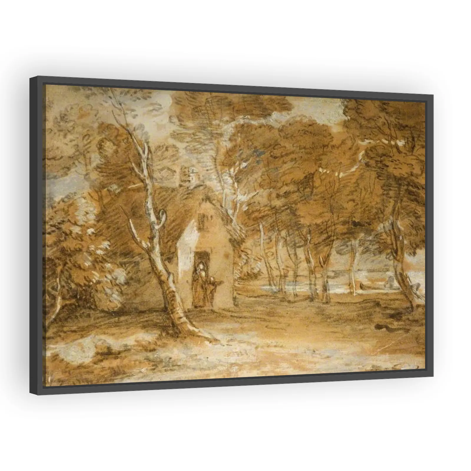 Thomas Gainsborough’s 1784 wooded landscape captures tranquil rural life with elegant brushwork, atmospheric light, and a harmonious composition—an appealing example of 18th-century British landscape...