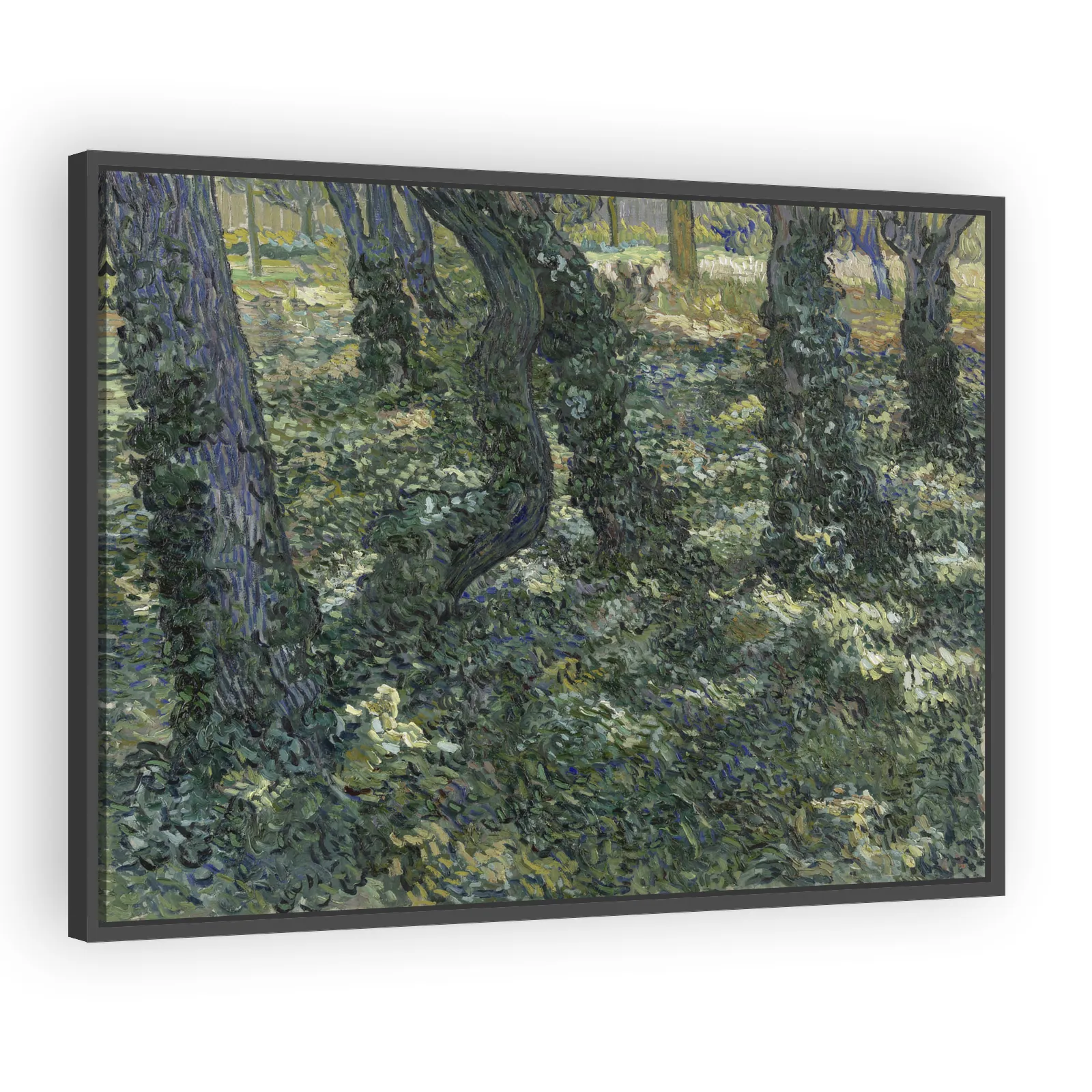 A vivid late-19th-century work by Vincent van Gogh (1889) that captures the tangled vitality of woodland growth. Bold brushwork, intense color contrasts, and a restless energy make this a powerful exa...