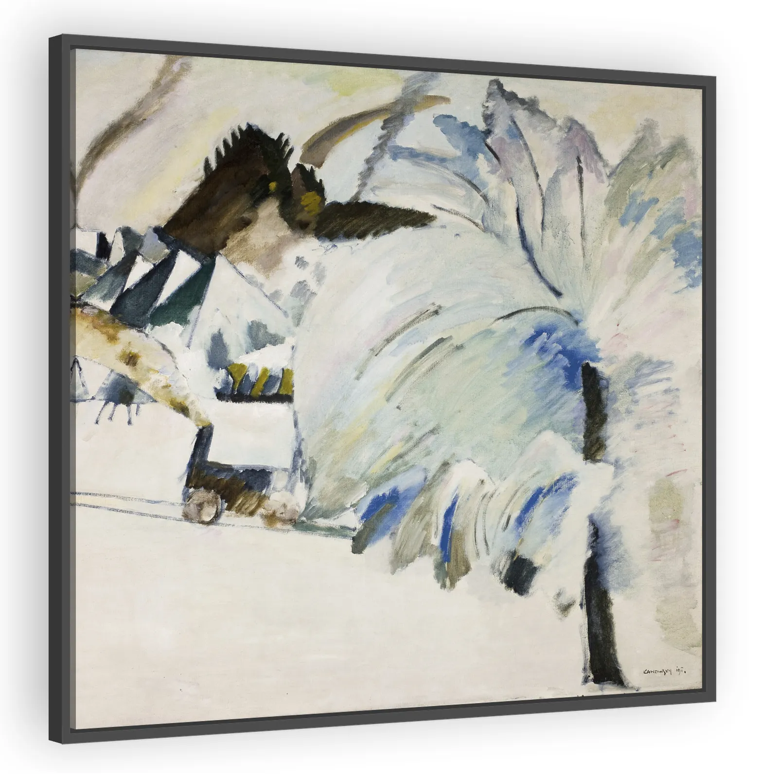 A compelling 1911 winter landscape by Wassily Kandinsky, Murnau with Locomotive bridges representational scenery and early abstraction. Its bold color and rhythmic forms capture the spiritual modernis...