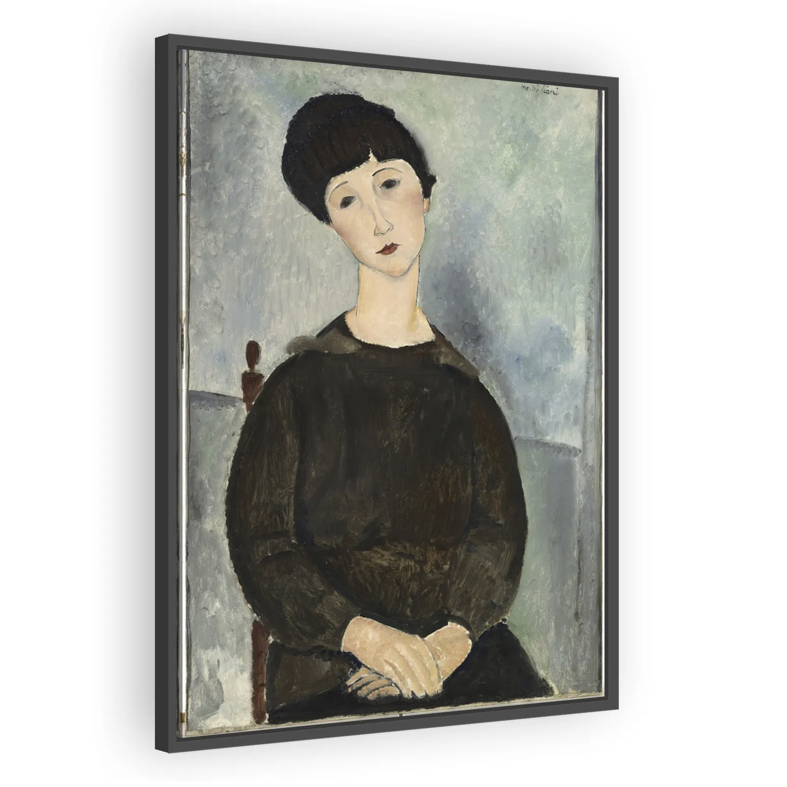 Amedeo Modigliani’s 1918 portrait captures his signature elongated forms and introspective gaze. Elegant and modern, the work exemplifies his refined line, simplified volumes, and haunting psychologic...
