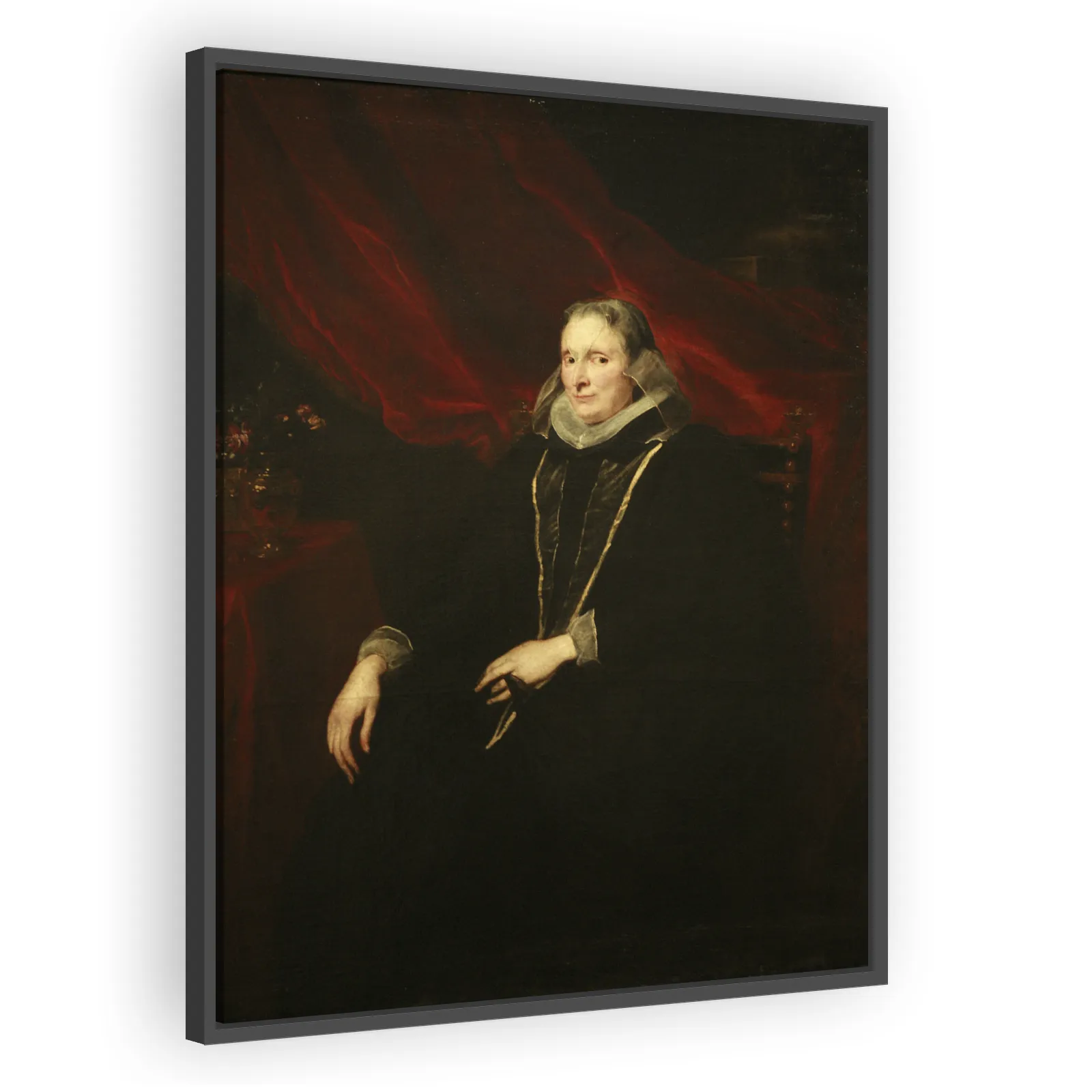 A refined 1622 oil-on-canvas portrait by Anthony van Dyck, showing a noblewoman in elegant dress against a curtained backdrop. Exemplifies van Dyck's elegant courtly style and subtle psychological pre...