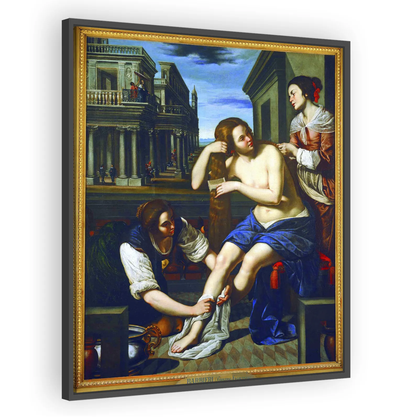 Artemisia Gentileschi’s Bathsheba at Her Bath (1637) presents a powerful, intimate rendering of a biblical subject. Noted for dramatic lighting and psychological intensity, this work exemplifies Genti...