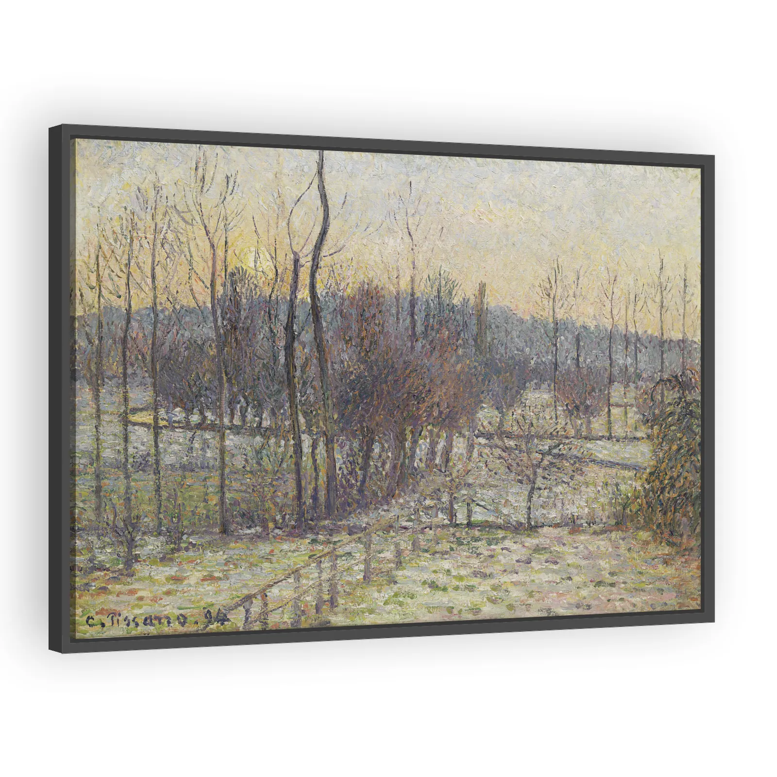 Camille Pissarro’s 1894 Neige, soleil couchant, Eragny captures the hush of a snow‑covered village at sunset. Combining sensitive observation with a late‑career synthesis of technique, the work appeal...