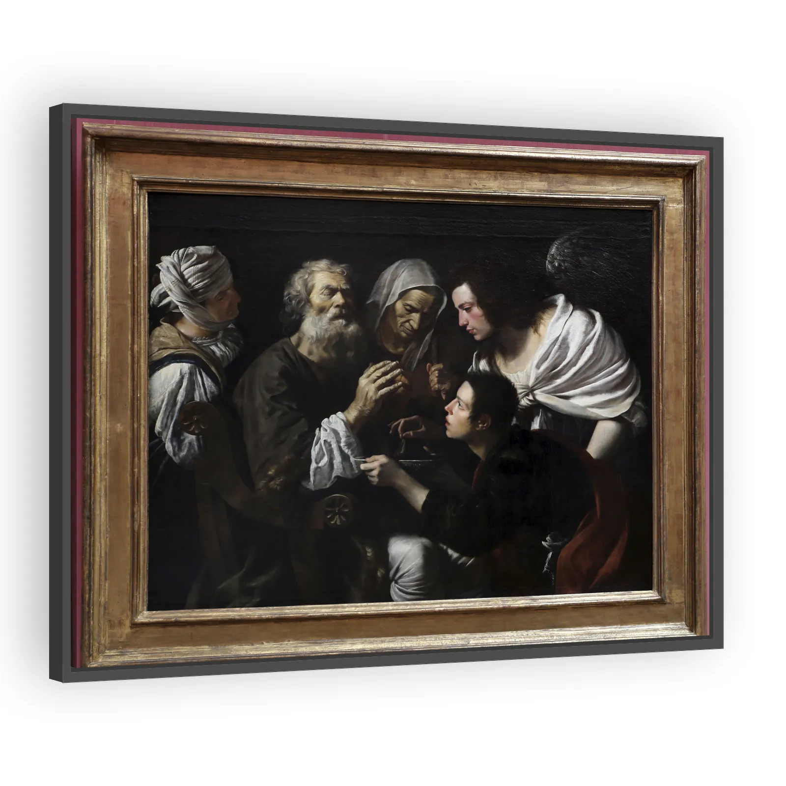 A late Caravaggio masterpiece (1617) from the Gemäldegalerie Berlin, The Healing of Tobit displays dramatic chiaroscuro, emotional realism, and narrative intensity—an evocative work for collectors and...
