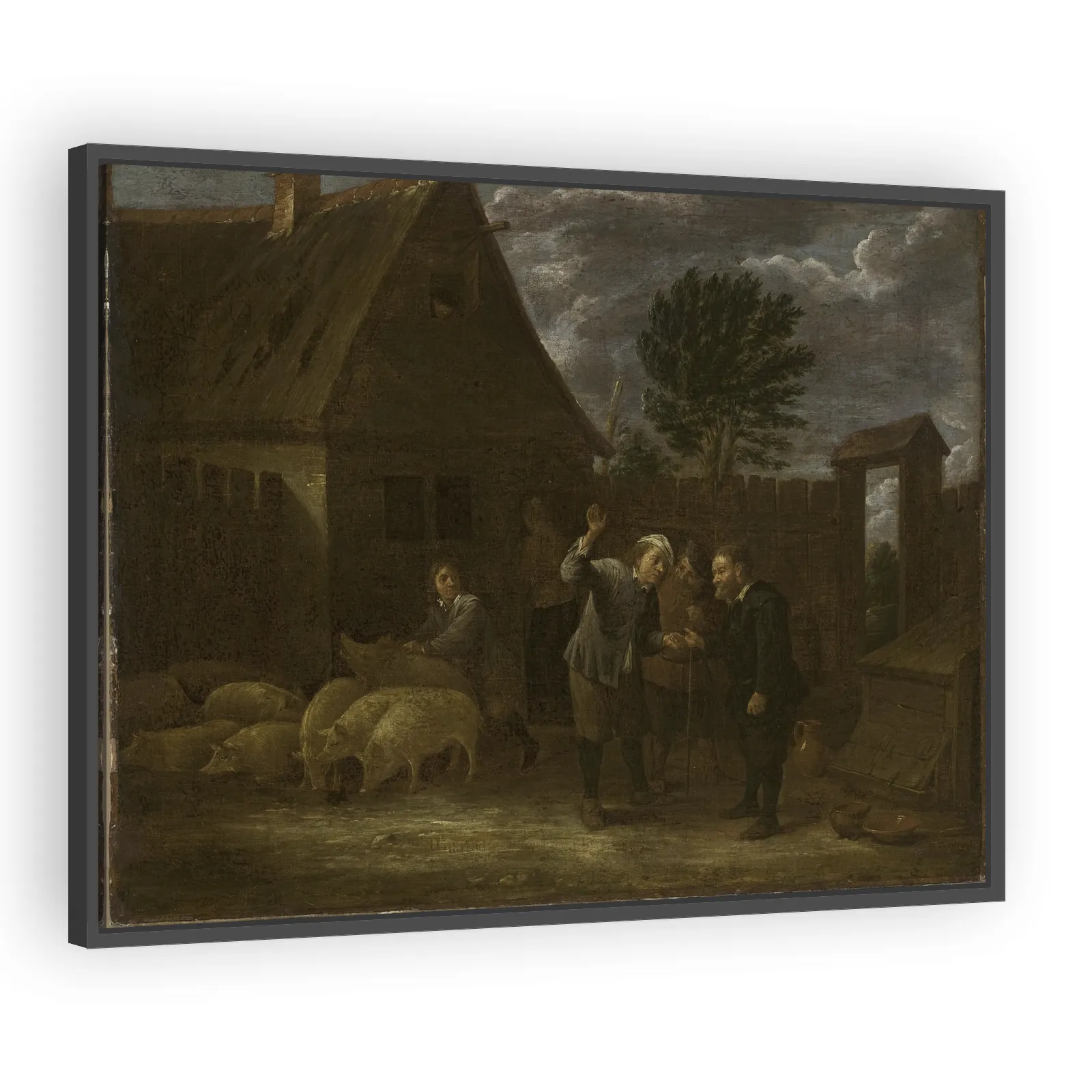 A lively genre scene by David Teniers the Younger in the National Museum in Warsaw. Noted for its meticulous detail, atmospheric Dutch-Baroque landscape sensibility, and engaging rural vignette that a...