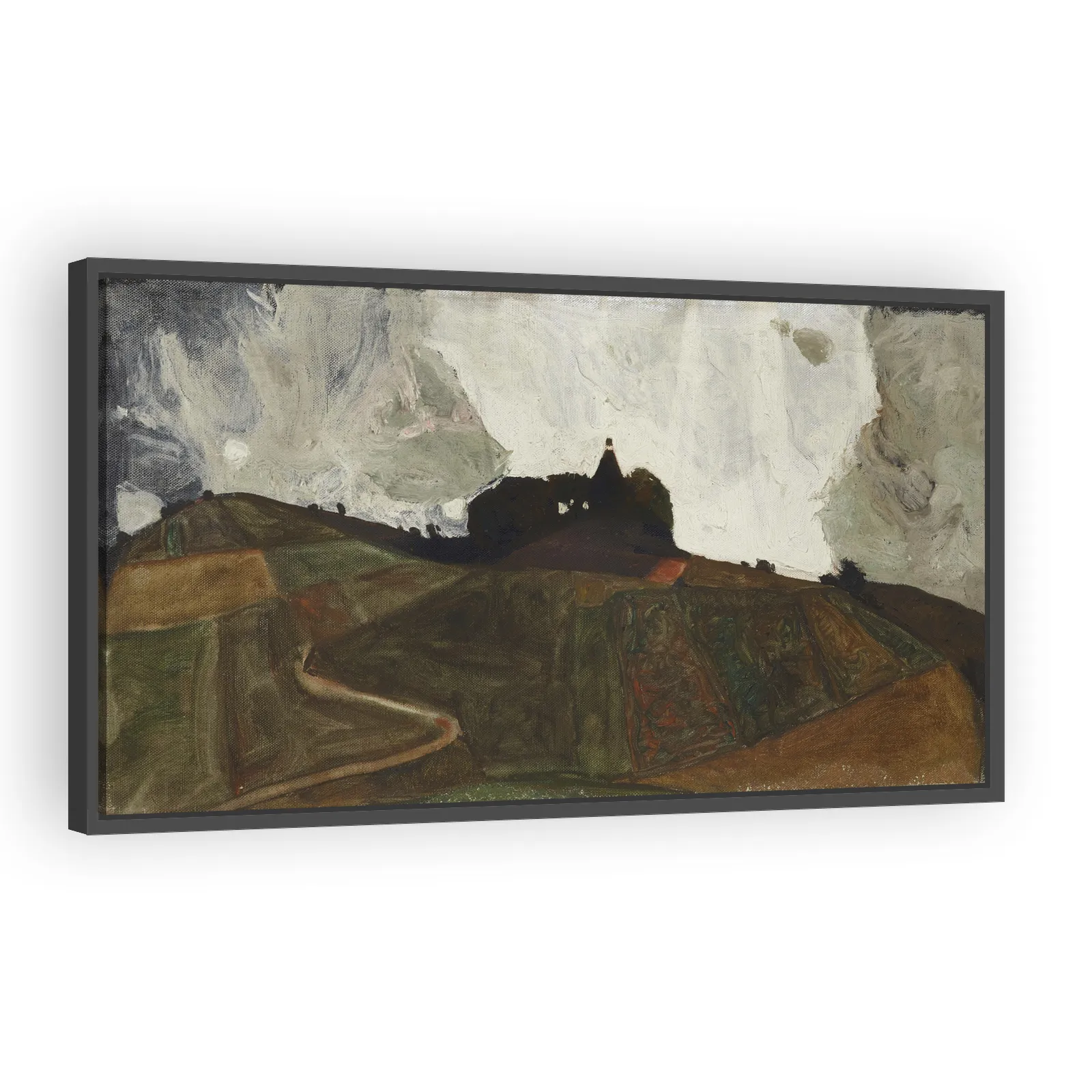 Egon Schiele’s 1910 Gewitterberg captures a storm-darkened Bohemian landscape with stark lines and expressive color. A compelling example of his transitional landscape work, it blends psychological in...