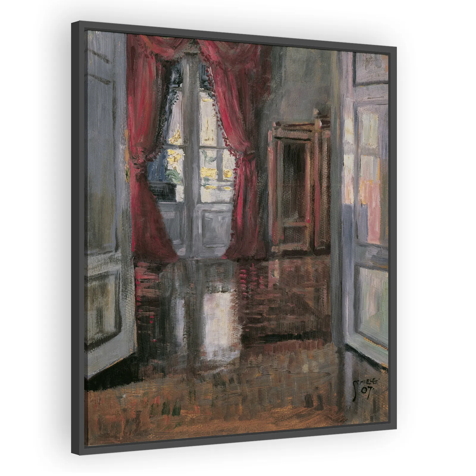 Egon Schiele's Interior (1907) presents a charged, intimate view of domestic space rendered in oil on cardboard. Early in his career, Schiele transforms the interior into a stage for psychological int...