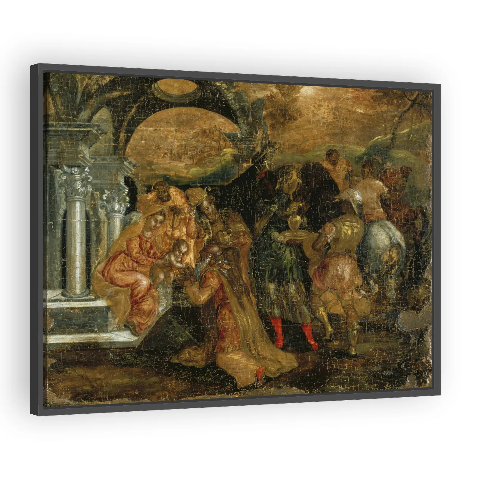 El Greco's Adoration of the Kings (1560) captures the sacred encounter of the Magi with a vivid synthesis of Byzantine icon tradition and Italian Mannerist invention. A powerful devotional scene prize...