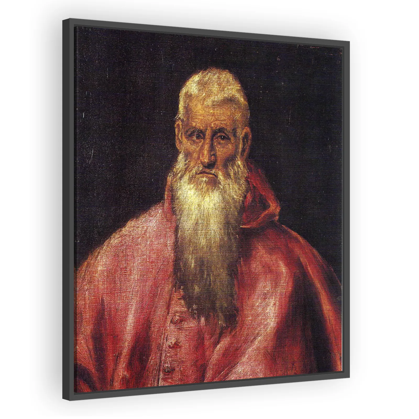 El Greco's Saint Jerome as Cardinal (c.1605) fuses Mannerist elongation with luminous color—an intimate, spiritual portrait that captures the scholar-saint's contemplative intensity and dramatic prese...